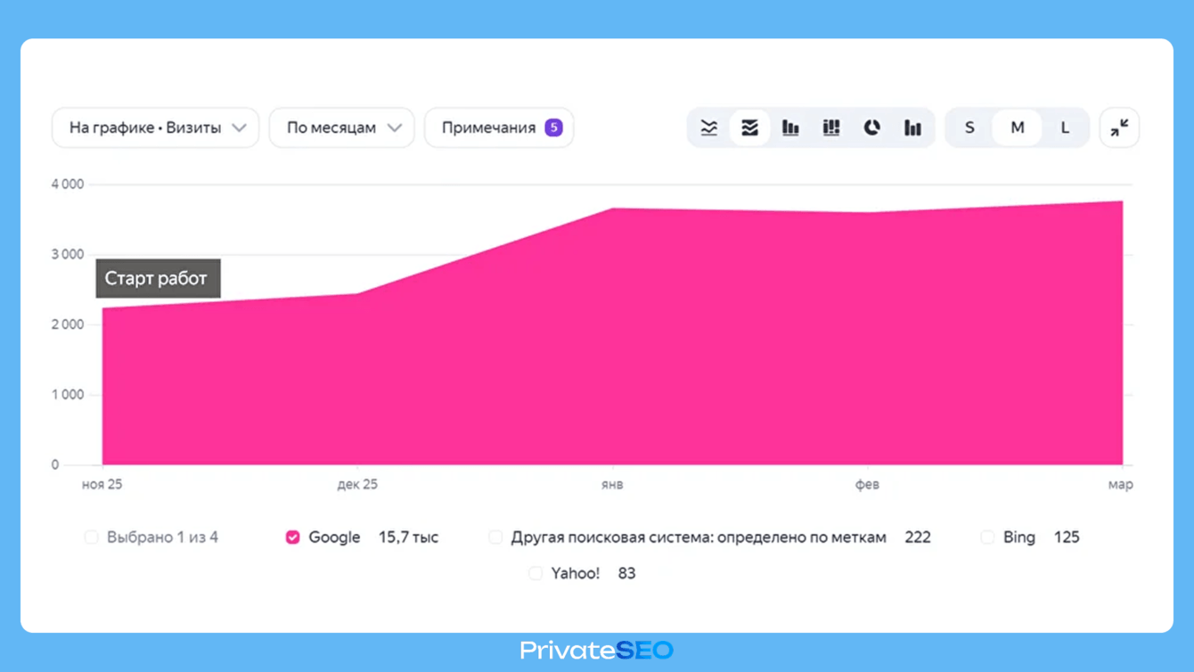 Эти показатели подтверждают, что техническая оптимизация и работа над структурой посадочных страниц позволили сайту успешно конкурировать за релевантный трафик в каждой из ключевых ниш магазина.