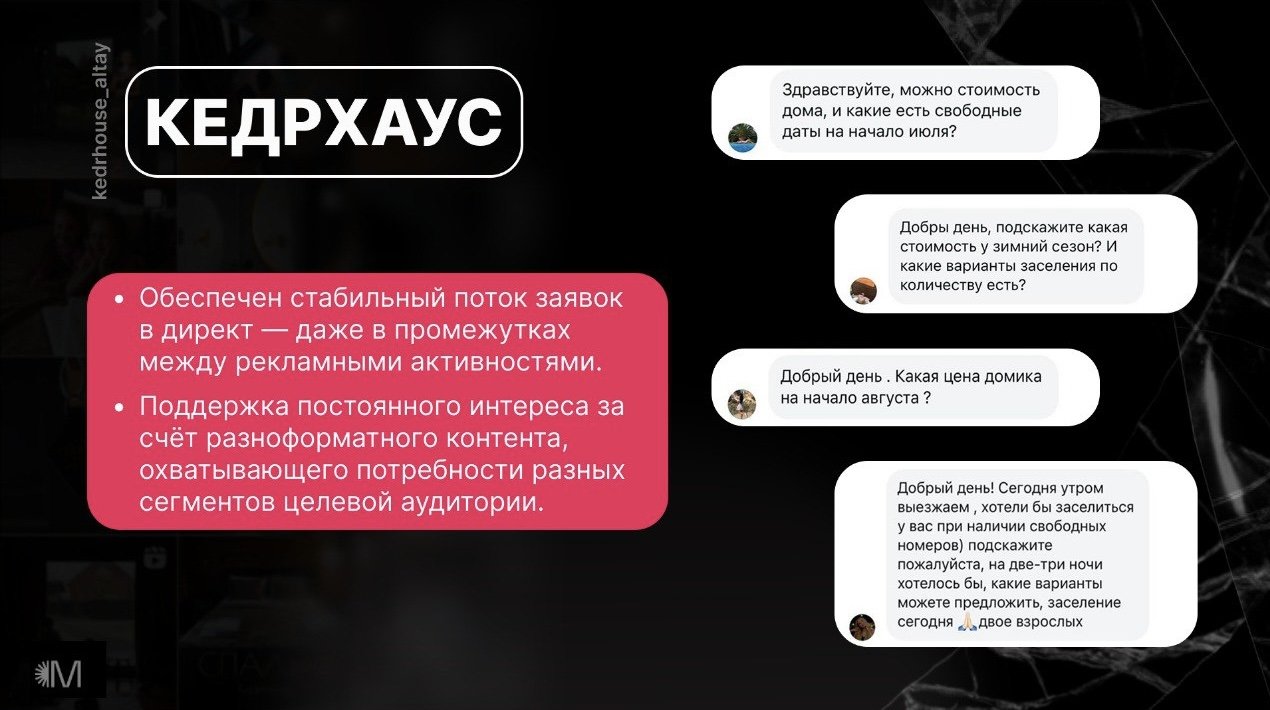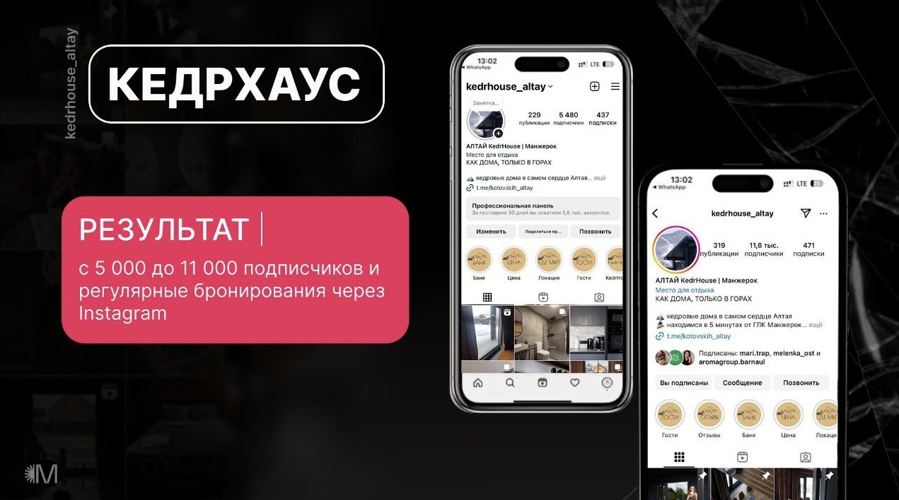 За год совместной работы KedrHouse получил не просто красиво оформленный Instagram, а работающий канал привлечения клиентов, повышение узнаваемости и укрепление доверия к бренду.