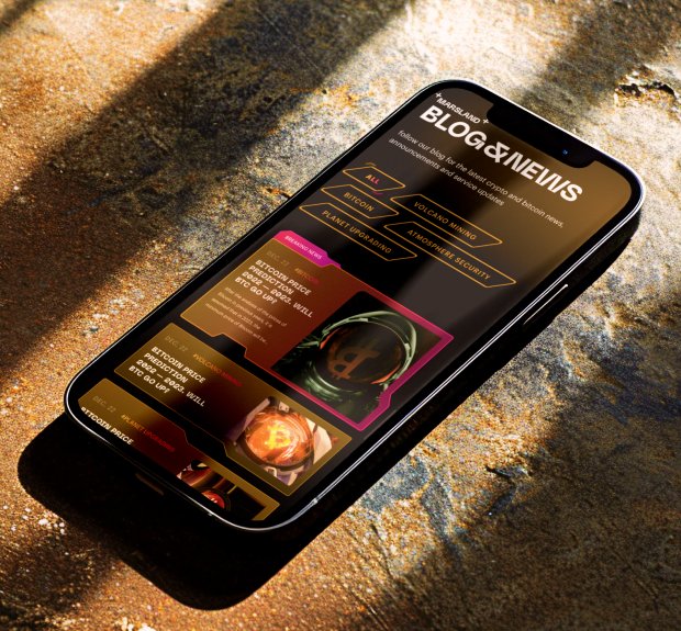 Четко осознаем, что подавляющее большинство будет юзать Marsland с мобильных гаджетов, поэтому детально прорабатываем адаптивную верстку страниц. Сталкиваемся с неочевидной проблемой: айфон от градиентов, блюров и анимаций нагревается не хуже самого вулкана из проекта. Мы конечно хотели создать ощущение полного погружения — но не такой ценой. После нескольких итераций оптимизации всё-таки «охладили» показатели. Теперь дизайн одинаково хорош и юзабелен на всех устройствах.