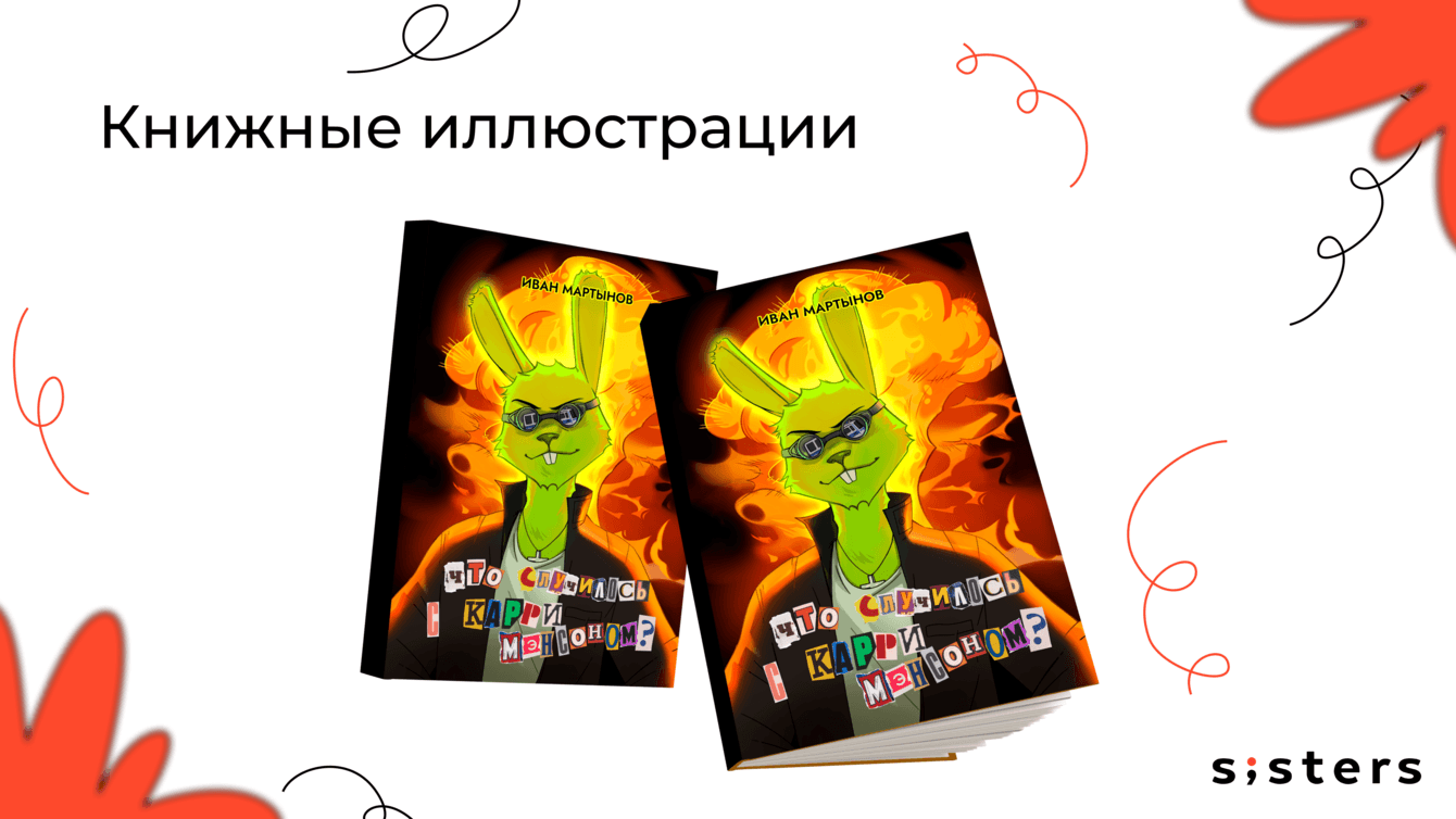 Отрисовка иллюстраций для социальных сетей, обложек и упаковок.