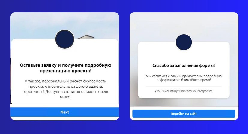 Самый эффективный тип рекламной кампании здесь – лидогенерация через моментальные формы для сбора заявок.