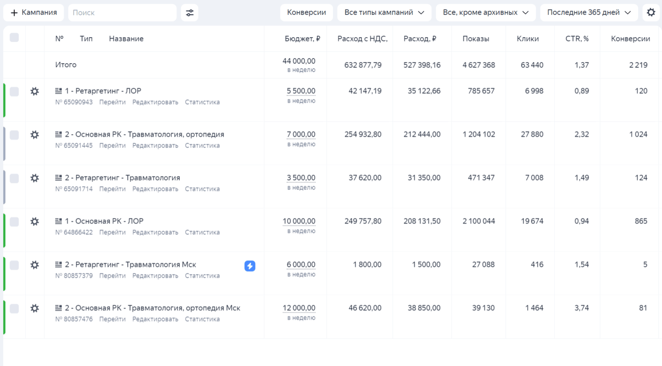 Далее после всех согласований и пополнения рекламного бюджета, было принято решение запускать РК на ручном управлении ставки.