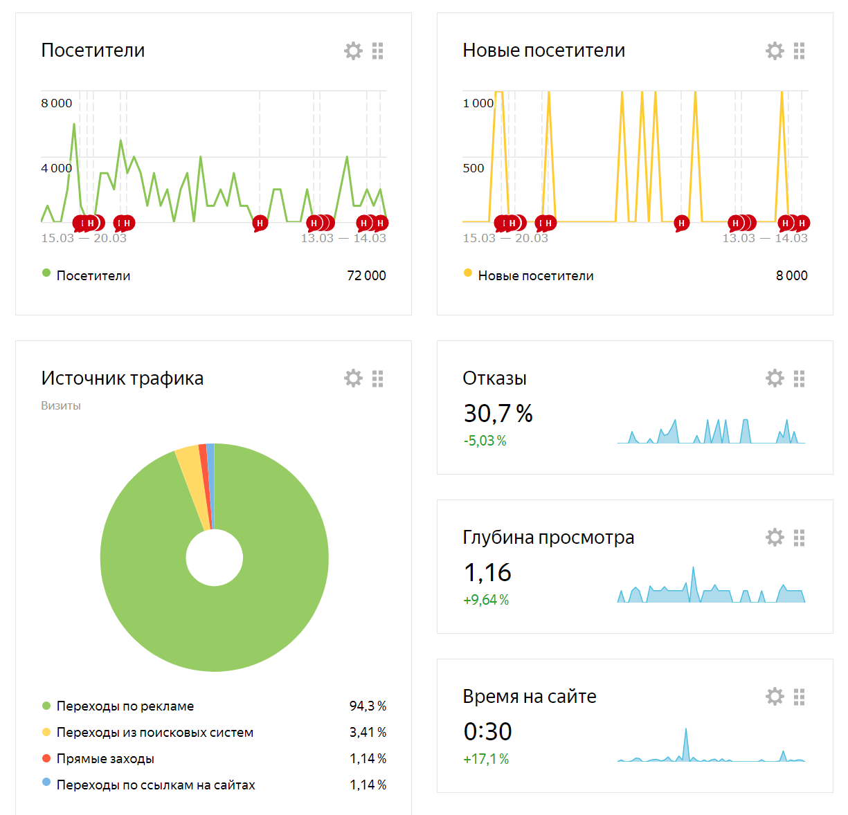 За год работы мы не раз перезапускали и тестировали другие посадочные страницы, было проведено множество A/B тестов с использованием различных типов объявлений.