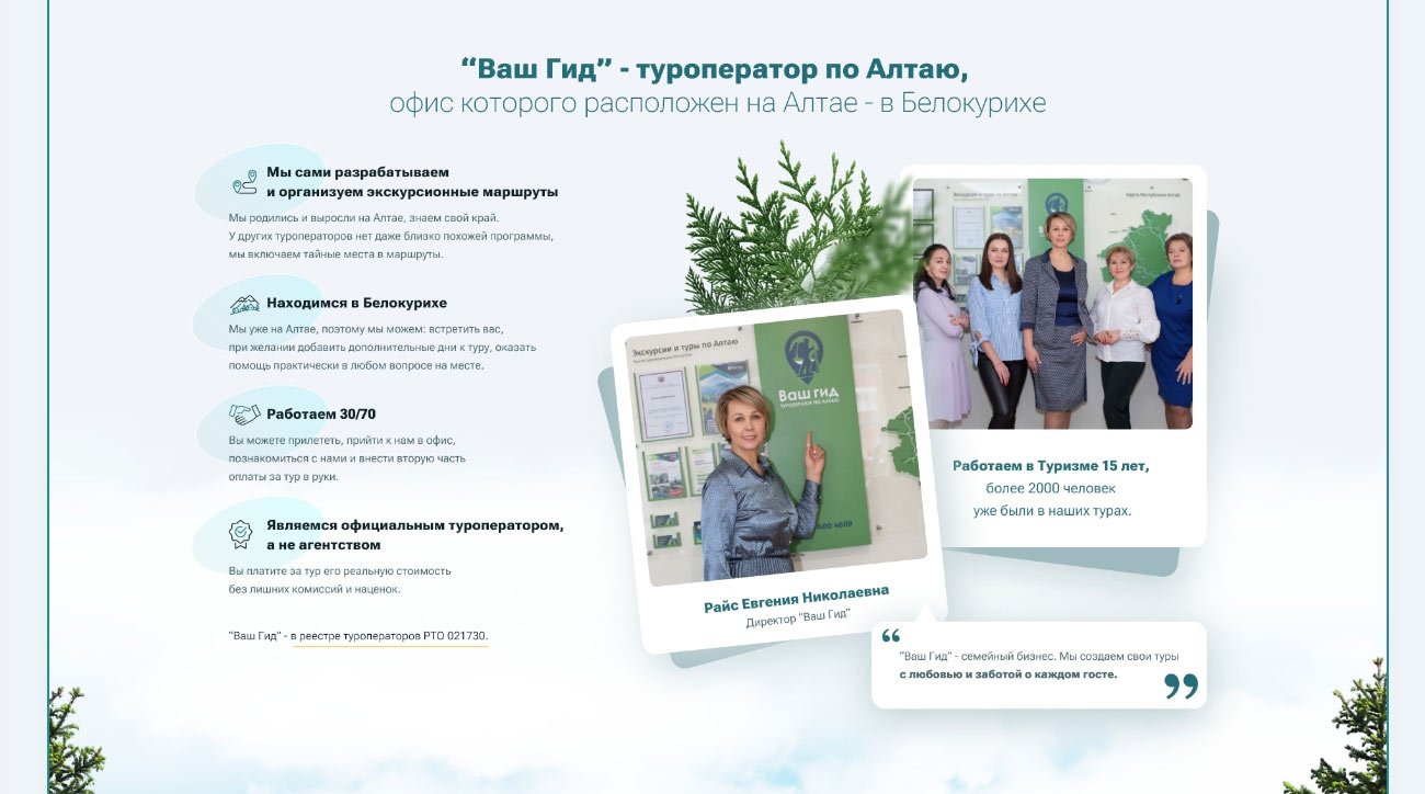 Клиент: Ваш гид - Федеральный туроператор по Алтаю с лучшим курортом в России.