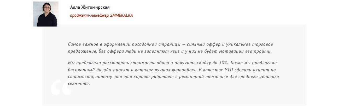В качестве другой посадочной страницы и генерации лидов мы внедрили квиз.