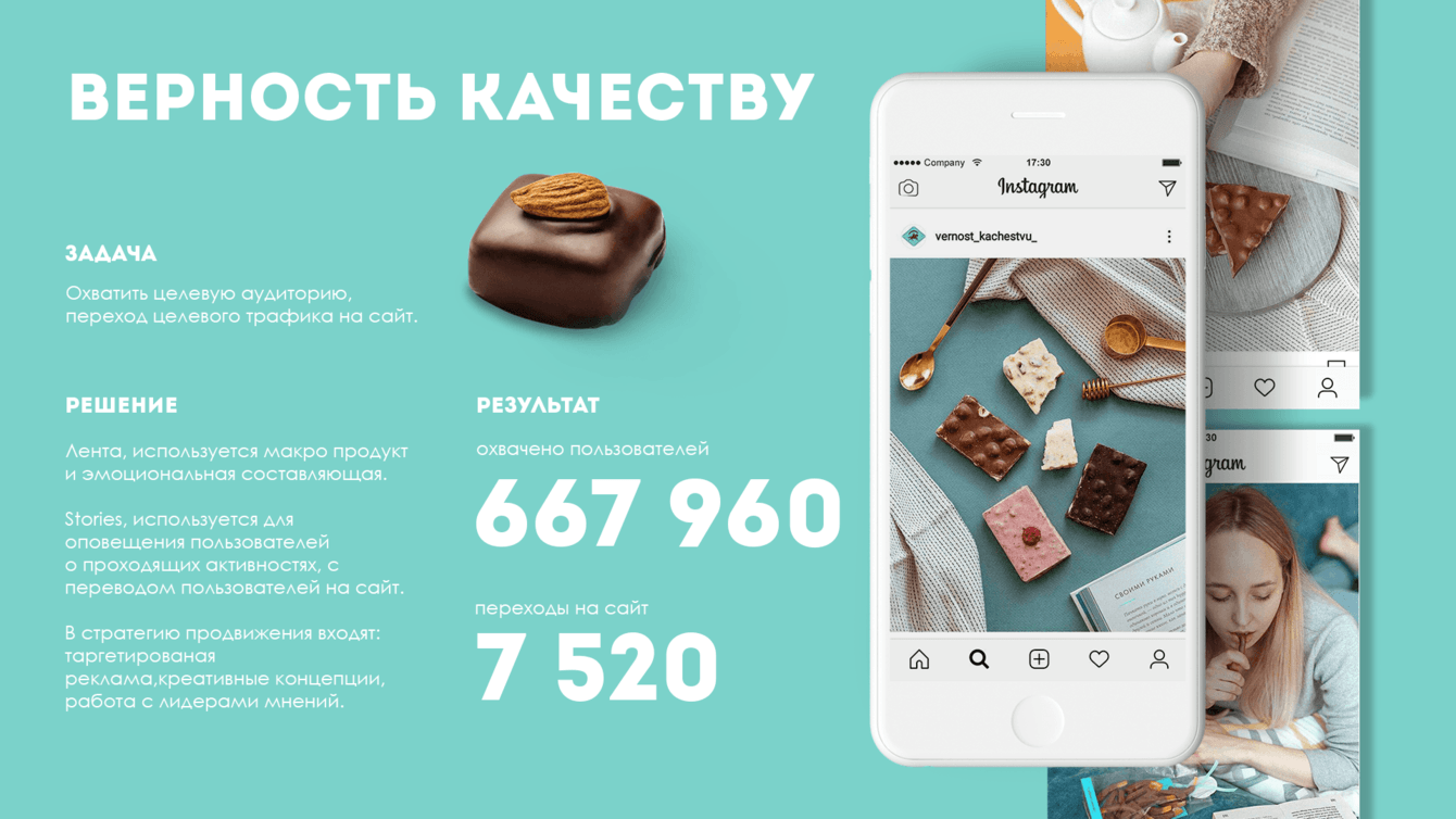 Контент в ленте, использовался преимущественно макро продукт, для демонстрации вкусовых качеств продукта и эмоциональная составляющая.