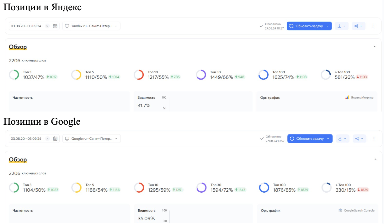 Собрали семантическое ядро из 2000+ запросов, по которым могут искать сайт. Создали новые страницы услуг и оптимизировали их под частотные запросы.