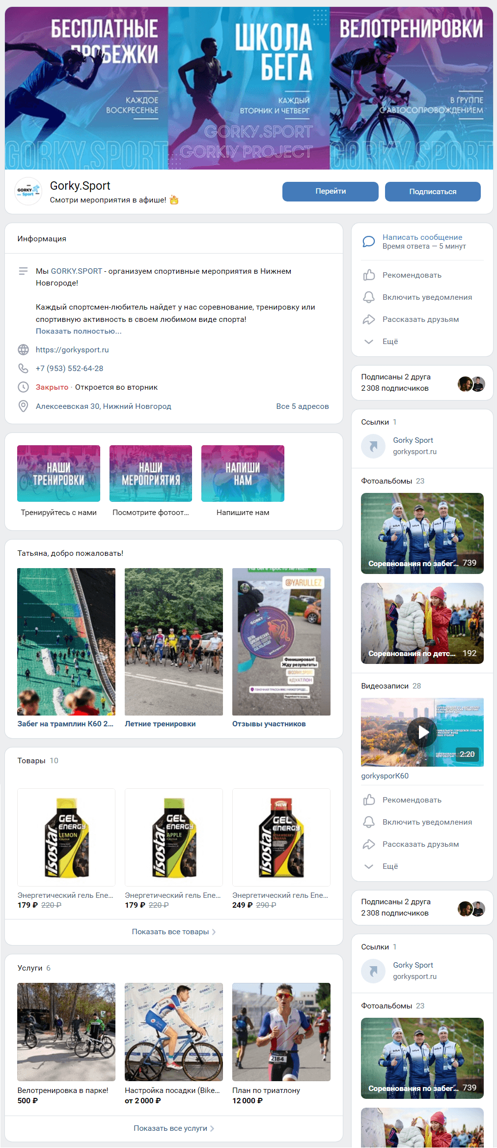 При выборе соцсети для создания аккаунта GORKY.SPORT мы учитывали возможности соцсетей, целевой аудитории, клиента и наши. Остановились на ВКонтакте.