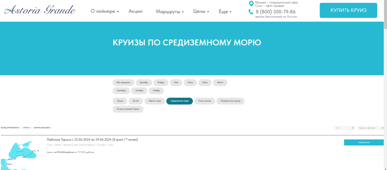 Как уже сказано выше, на старте работ мы столкнулись с тем, что ТОП выдачи состоит из агрегаторов и больших морских круизных компаний.