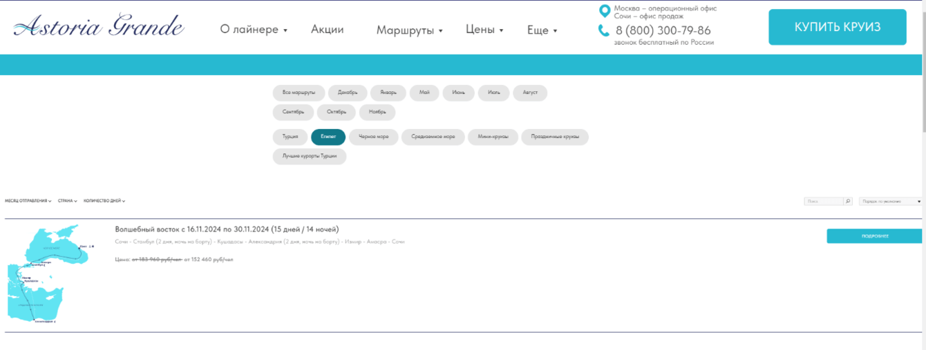 Работая с семантикой, мы обнаружили поисковый спрос на портовые города по пути следования круизного лайнера. В результате был создан раздел «Экскурсии» https://astoriagrande.com/excursions и страницы: