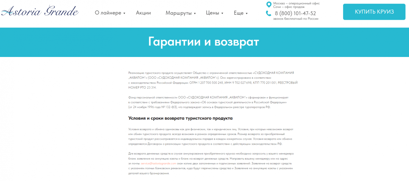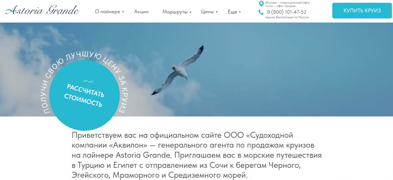 Astoriagrande.com — cайт единственного в России морского круизного лайнера.
