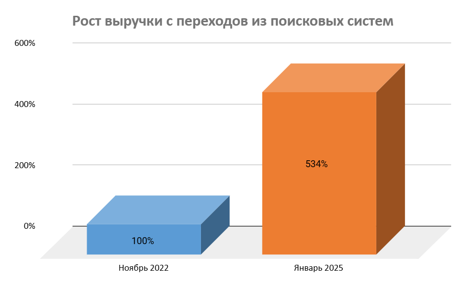✅ Рост выручки с переходов из поисковых систем за 2 года работ составил более 400%