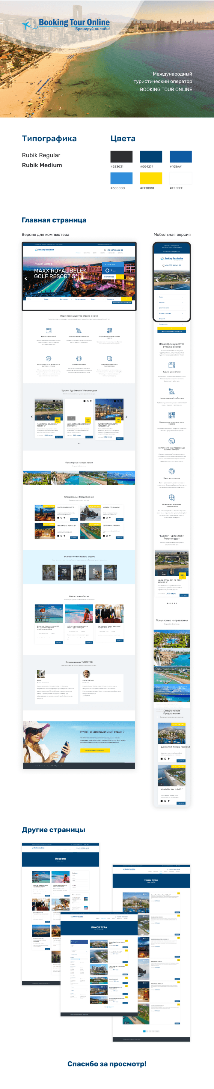 Спецификой проекта стала необходимость появления портала, с помощью которого можно не только ознакомиться с туристическими предложениями, но и осуществить здесь же бронирование понравившейся поездки. Благодаря расширенному функционалу по поиску и подбору маршрутов, всего за несколько минут можно удовлетворить свое желание даже имея самый прихотливый вкус. В дополнение к основному функционалу, также в наличии новостной блог для большей информативности о туристической жизни.