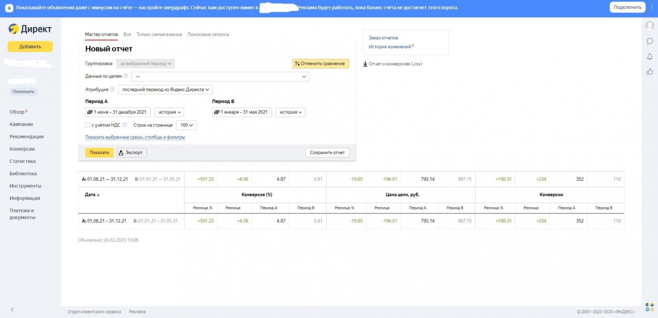 В начале работы над проектом был проведен подробный аудит действующих рекламных кампаний. В результате тщательного анализа статистики и настроек был составлен подробный план работы над кампаниями с целью повышения эффективности их работы и увеличению количества лидов, а также снижению цены конверсии