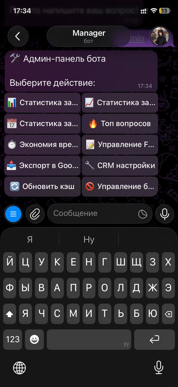 Добавили систему блокировки пользователей через инлайн меню. Пошаговая блокировка с указанием причины и подтверждением. Сделали расширенную аналитику: воронка конверсии, топ вопросов, экономия времени, активность пользователей.