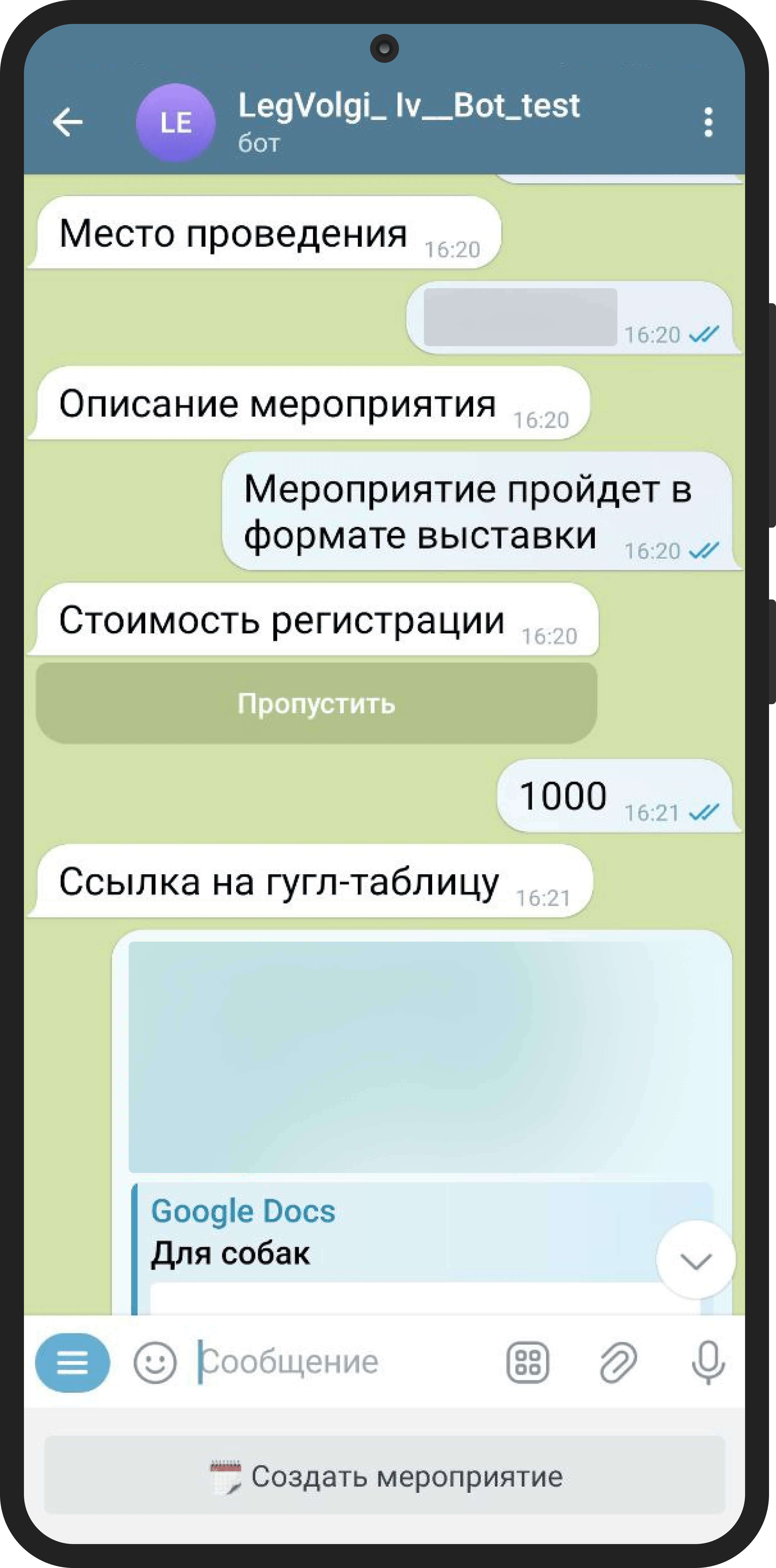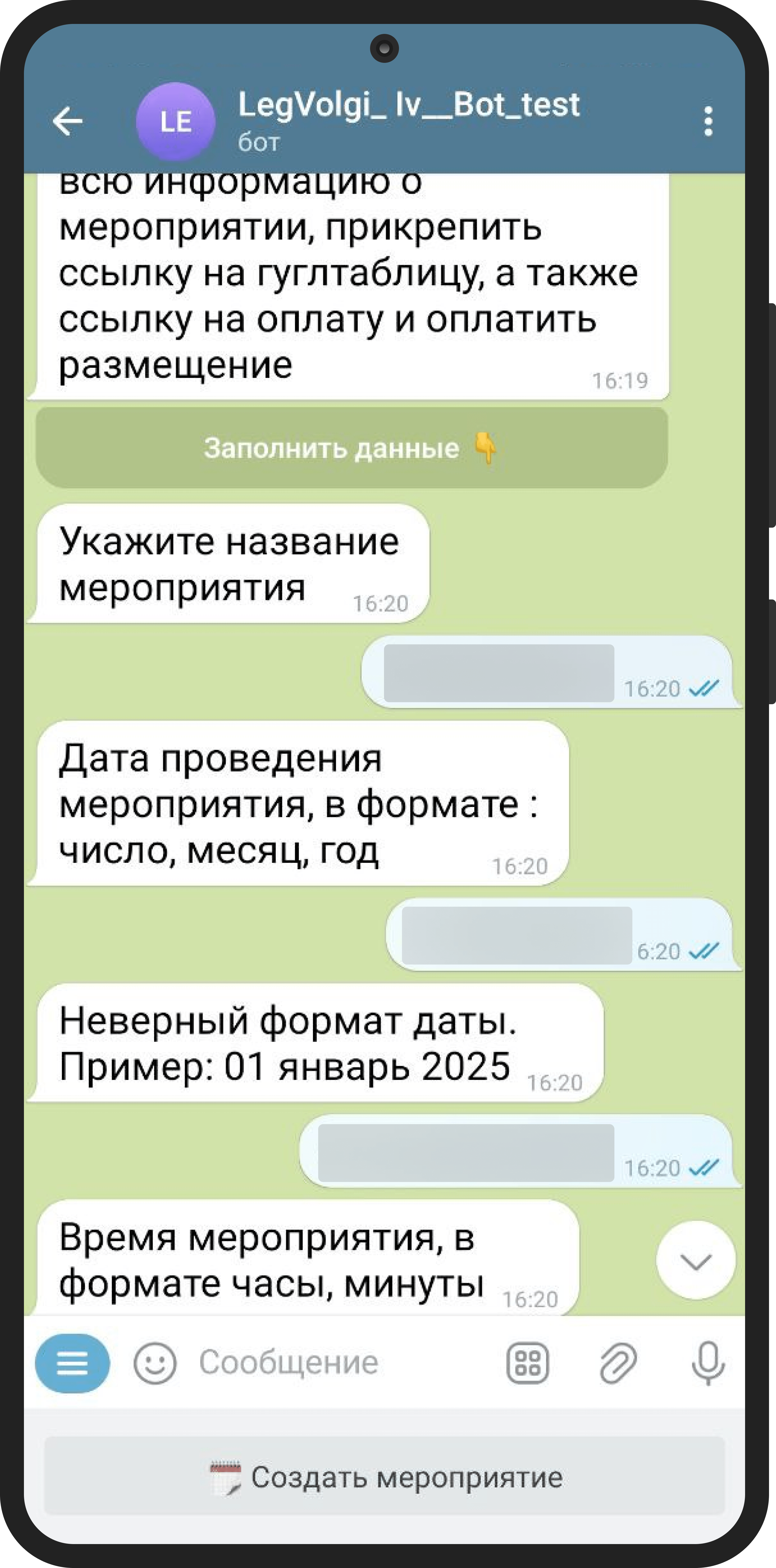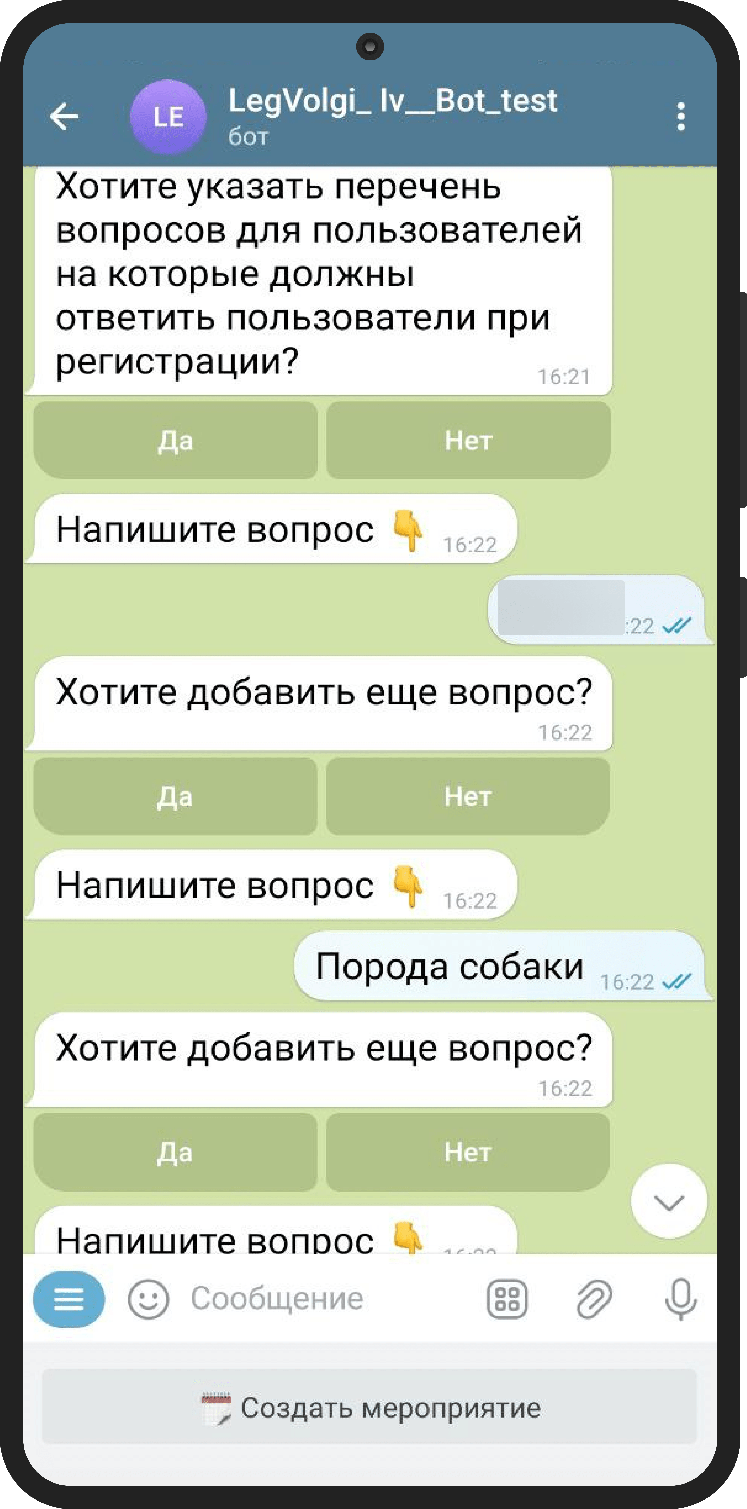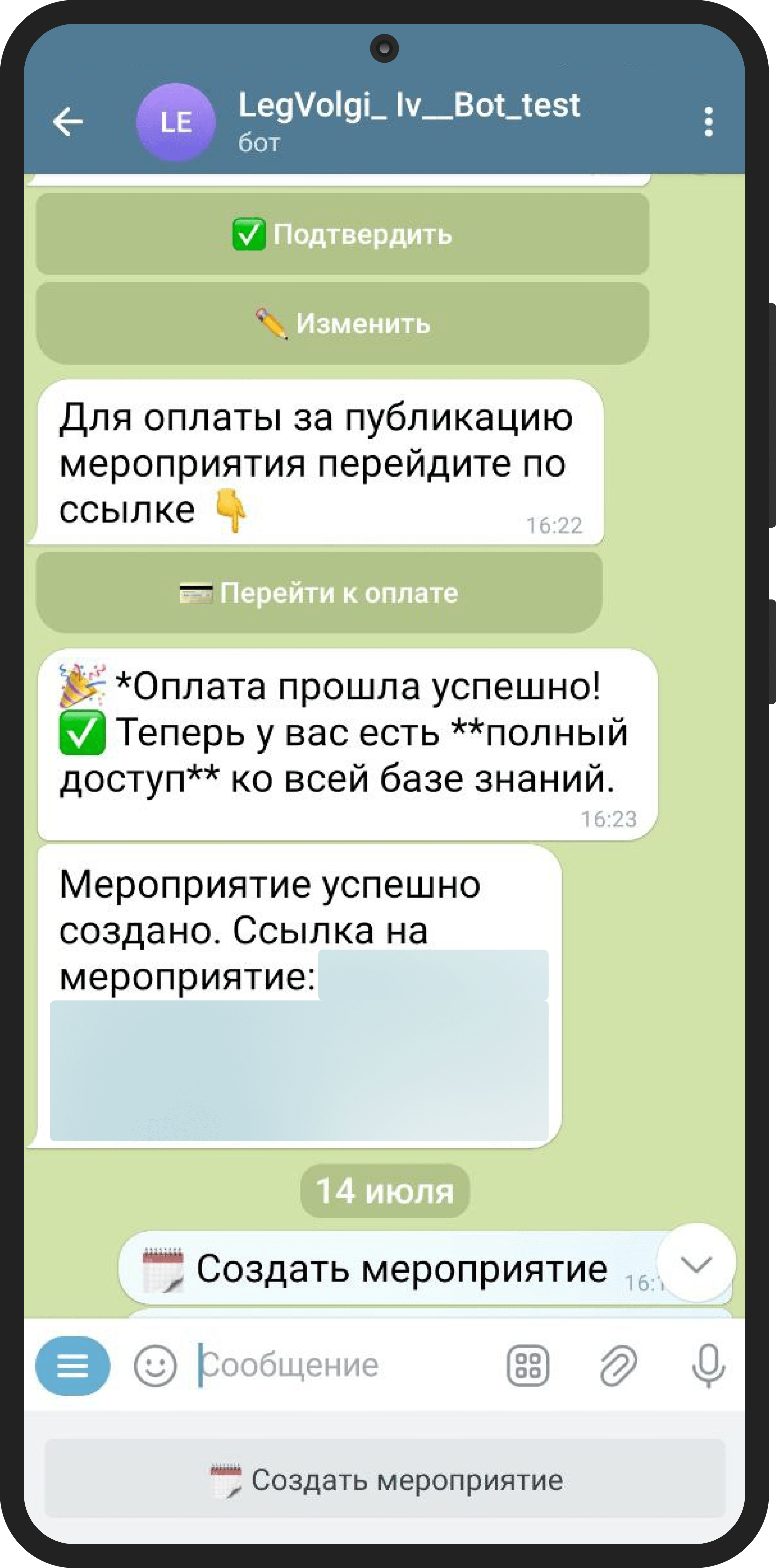 Создание и редактирование событий через конструктор в чате