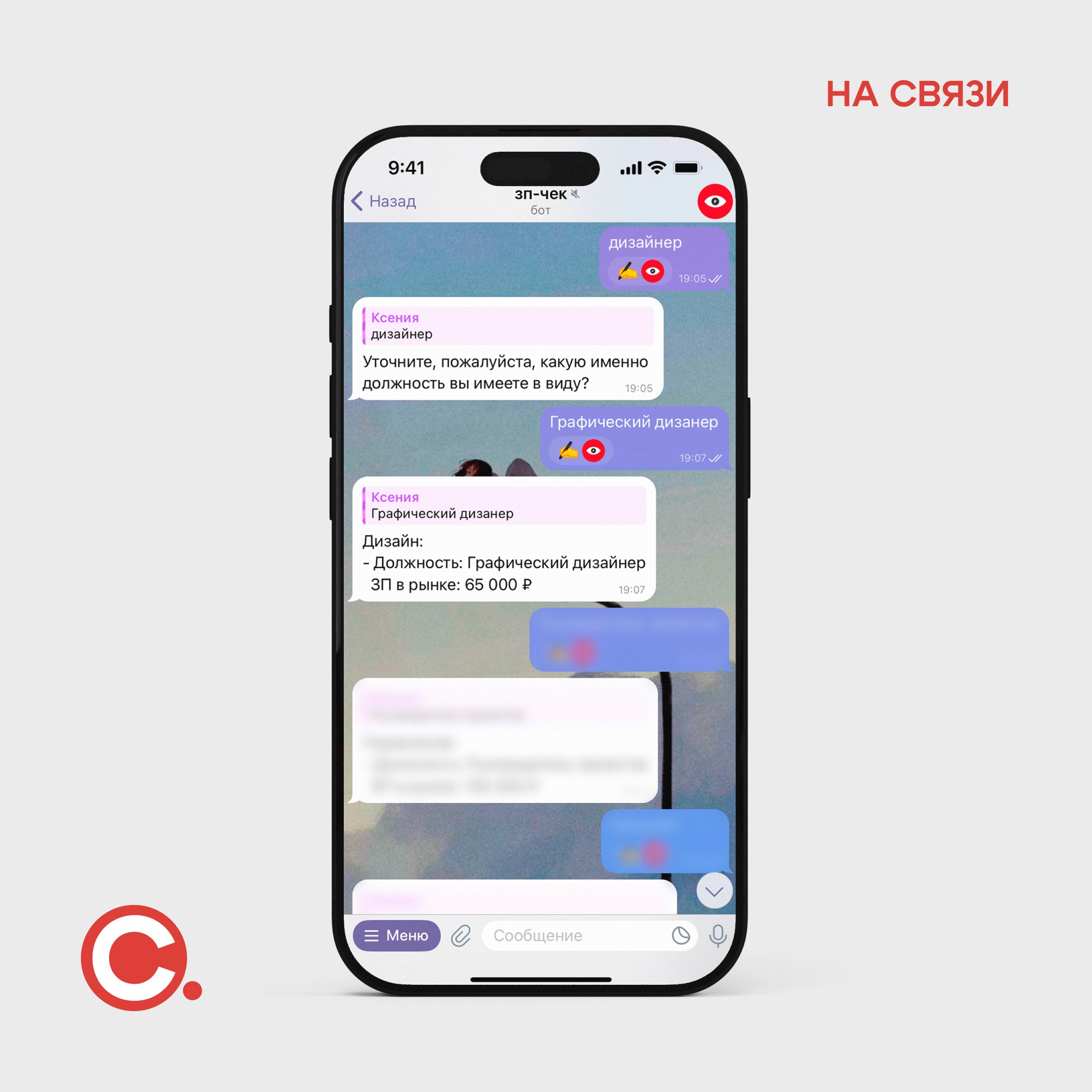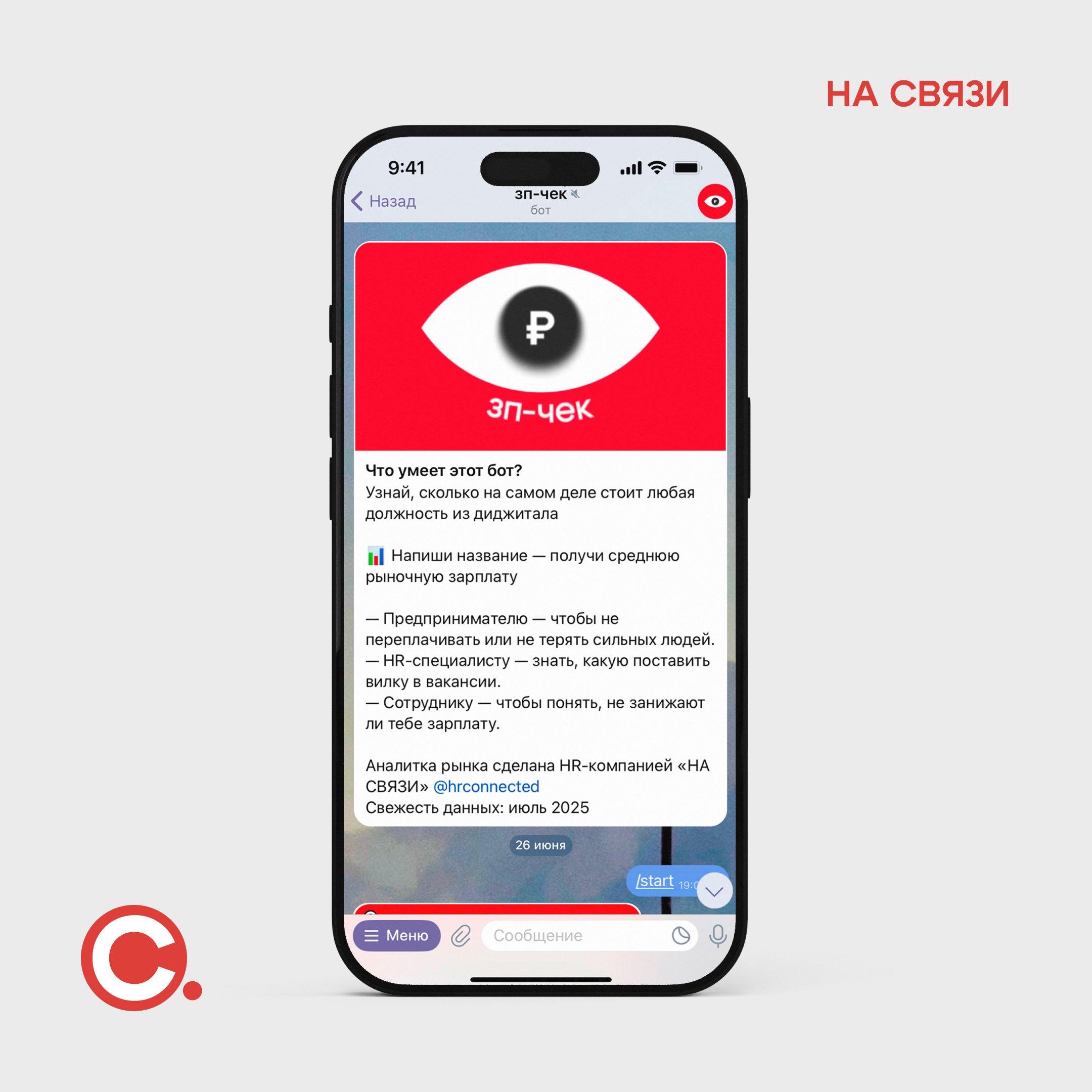 Человек пишет или говорит голосом название диджитал-должности → бот ищет её в базе → выдаёт среднюю зарплату по рынку.