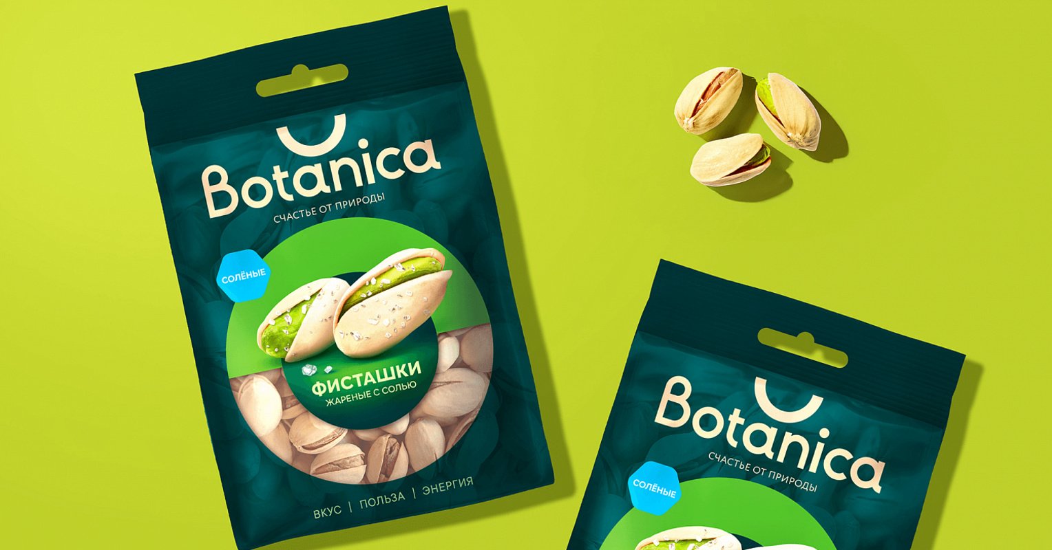 Визуальная подача продукта — гедонистическая. Мы отказались от хаотичного нагромождения еды и сделали ставку на эстетически выверенные аппетитные акценты. Элегантной находкой на упаковке с фисташками послужил маленький алмаз, изображающий соль.
