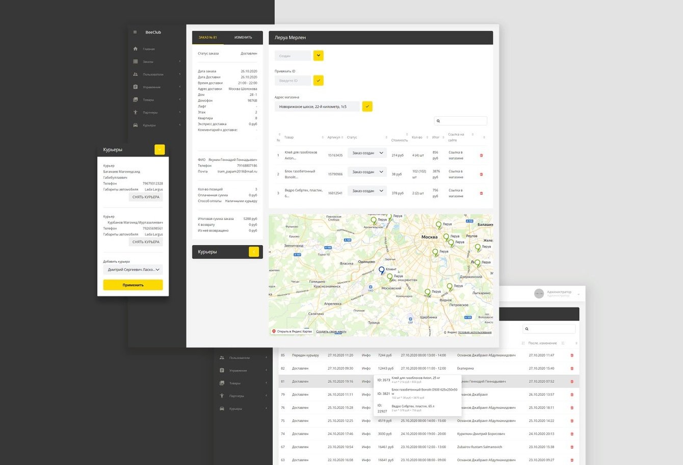 Разработали систему управления собственным парком автомобилей, штатом курьеров и менеджеров по работе с клиентами.