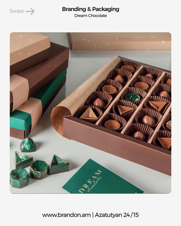 ? Упаковка выполнена в минималистичном стиле, а цвета, сочетание шоколада и зеленого, передают суть и ценности бренда.