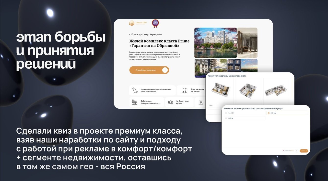 По опросу клиентов, все кто приходил в офис застройщика сталкивались с нашей рекламой в Digital пространстве и знали информацию о комплексе. Нам, наконец-то, развязали руки и дали больше бюджета.