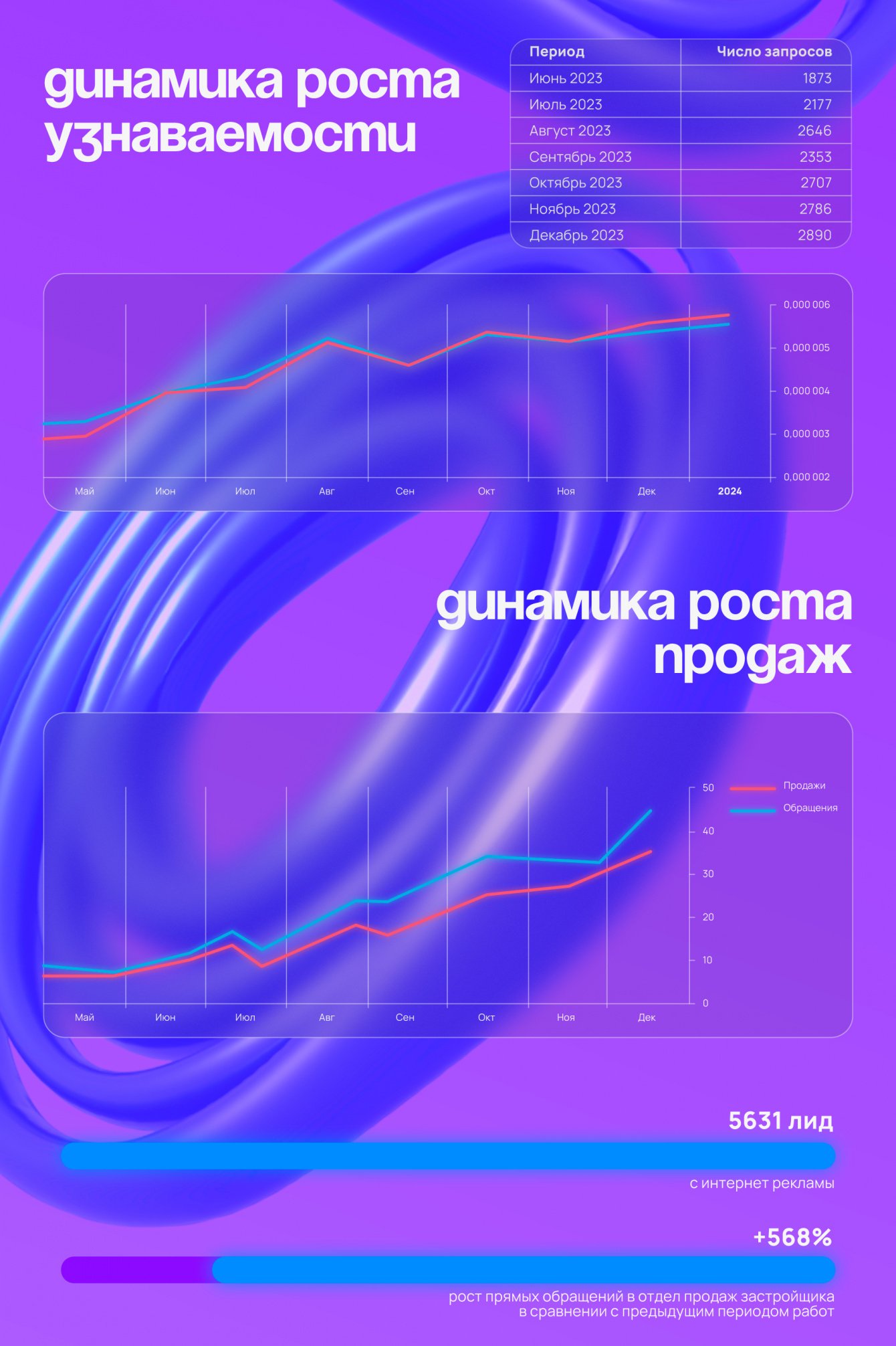 Мы стали получать первые продажи с нашей рекламы, а самое интересное - увеличилось количество прямых обращений в отдел продаж застройщика в 3 раза.