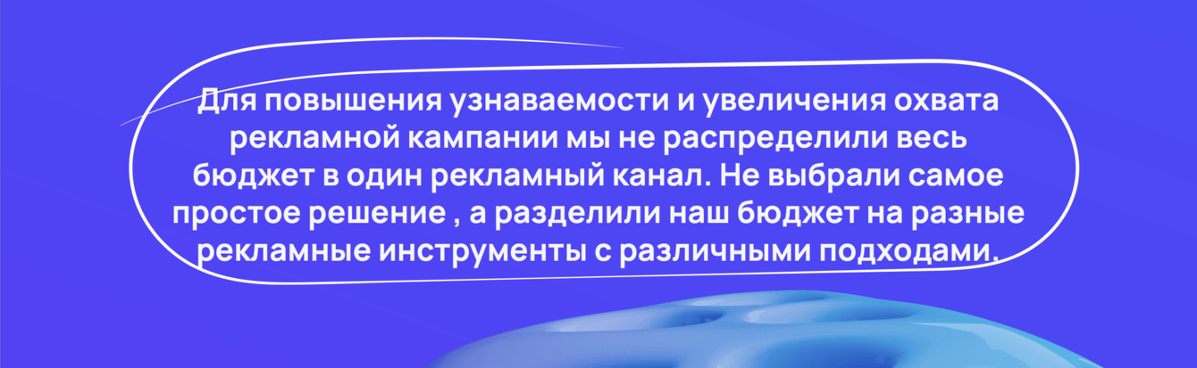Performace Яндекса и Telegram ADS помогали нам закрыть проблему с поступающими лидами с нашей рекламы, медийная же составляющая работала на прямые обращения в компанию и рост узнаваемости бренда в целевом гео.