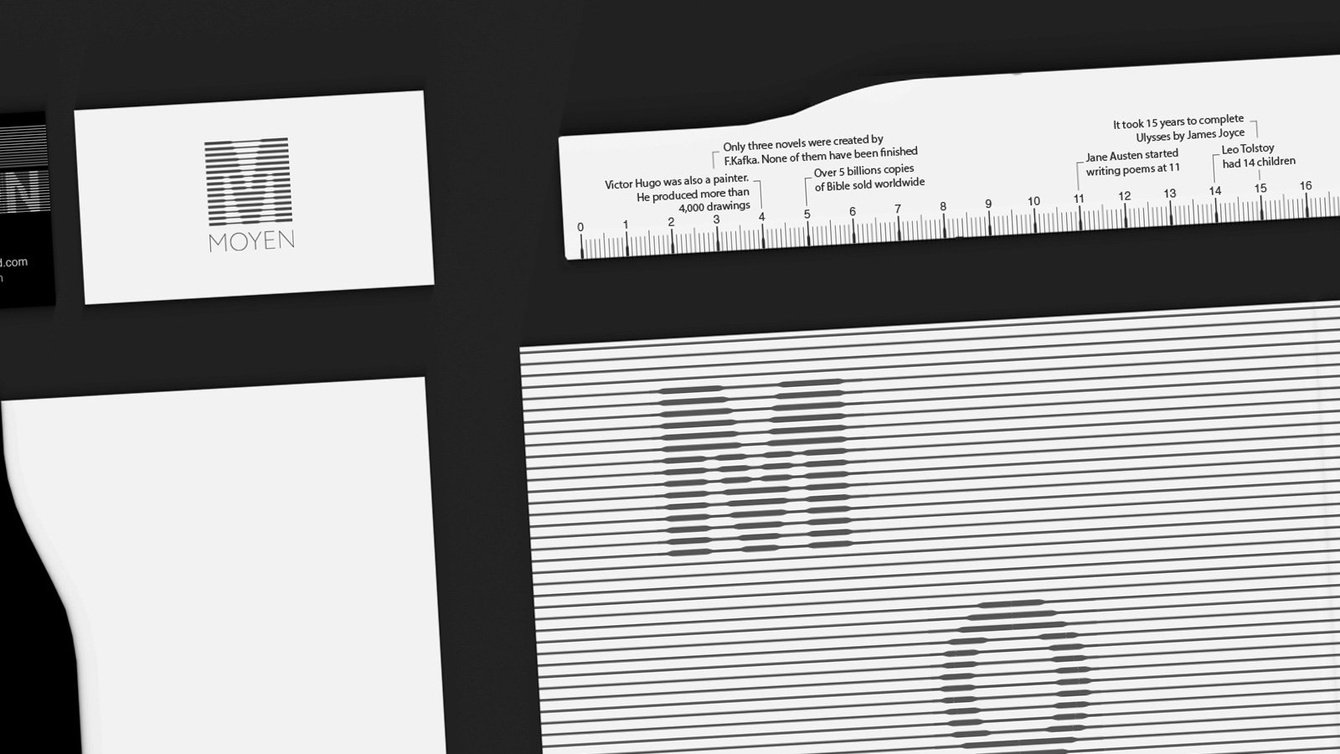 Меняя толщину строк (каждая символизирует страницу), мы добились того, что любая графика становится узнаваемой. Продолжая данную идею, мы разработали индивидуальный шрифт Moyenta. Он полностью разработан нами, запрограммирован, и установлен на все рабочие компьютеры клиента.