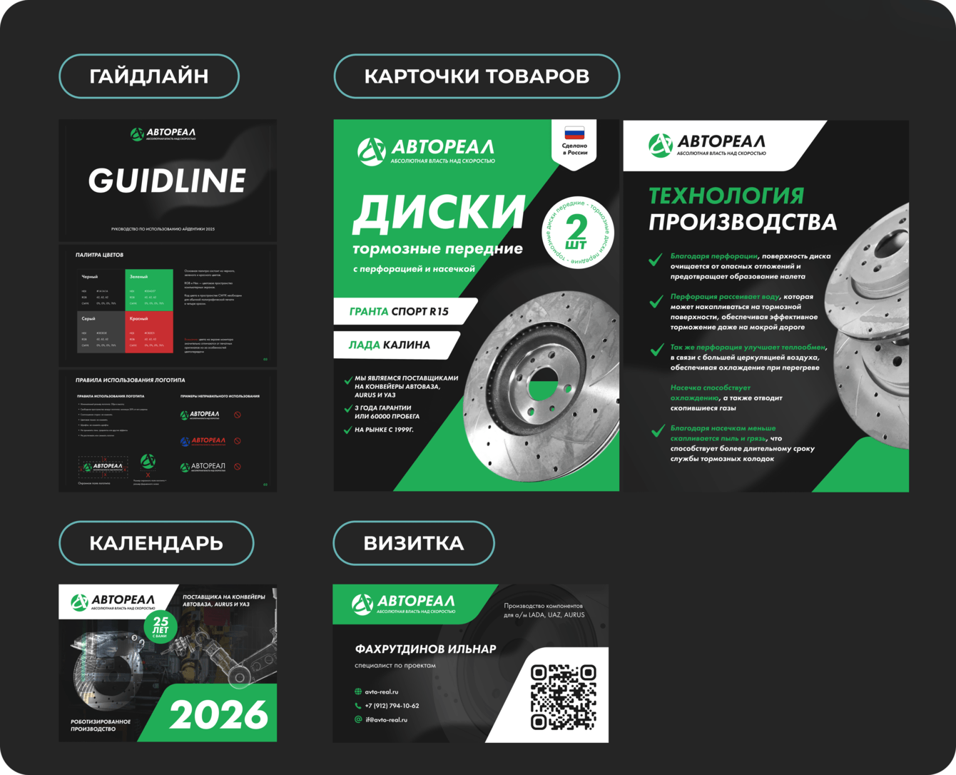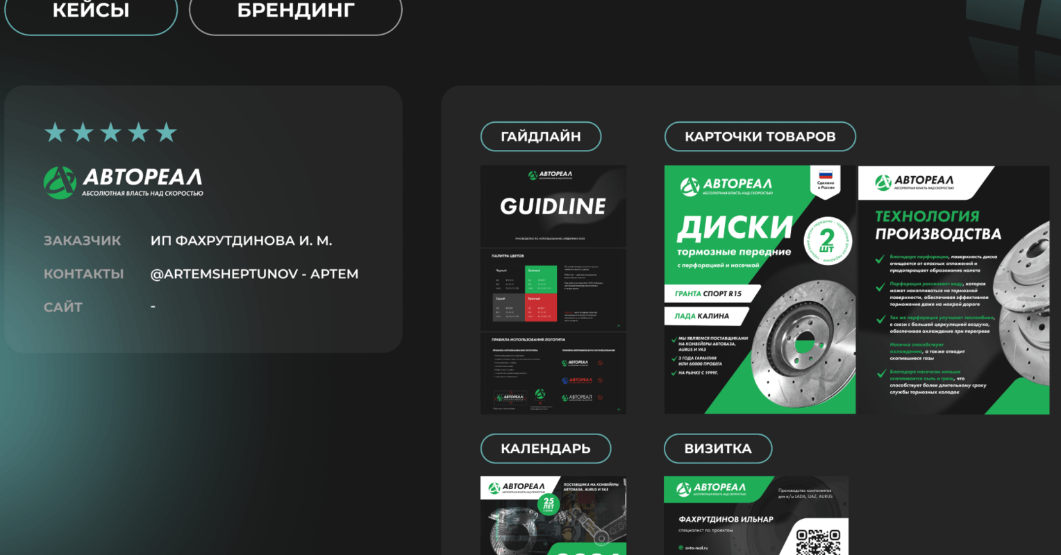 Компания «Автореал», многолетний игрок на рынке автокомпонентов, столкнулась с проблемой «невидимости» на фоне конкурентов. Несмотря на высокое качество продукции, бренд не обладал запоминающимся образом, а его визуальная коммуникация (логотип, сайт, рекламные материалы) была устаревшей и не передавала ключевых преимуществ — технологичности, надежности и экспертизы. Это мешало выходить на новые рынки и привлекать крупных B2B-партнеров. Задачей было создание сильного, современного бренда, который визуально подчеркнет позицию технологического лидера и повысит доверие со стороны потенциальных клиентов.