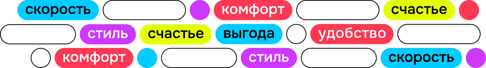В рекламной кампании мы говорим не только о продукте, но и о ценности для покупателей, «настраивая» квартал на потребности каждого: на комфорт, на стиль, на скорость, на выгоду, на уют. Форма кнопки позволяет подчеркнуть самое важное на рекламных билбордах, диджитал-баннерах и в буклете.