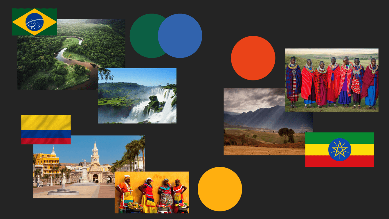 Цветовая палитра вдохновлена природой и пейзажами стран-производителей зёрен — Бразилия, Колумбия, Эфиопия. Один цвет — моносорт, два и более — смесь зёрен из соответствующих сортов.