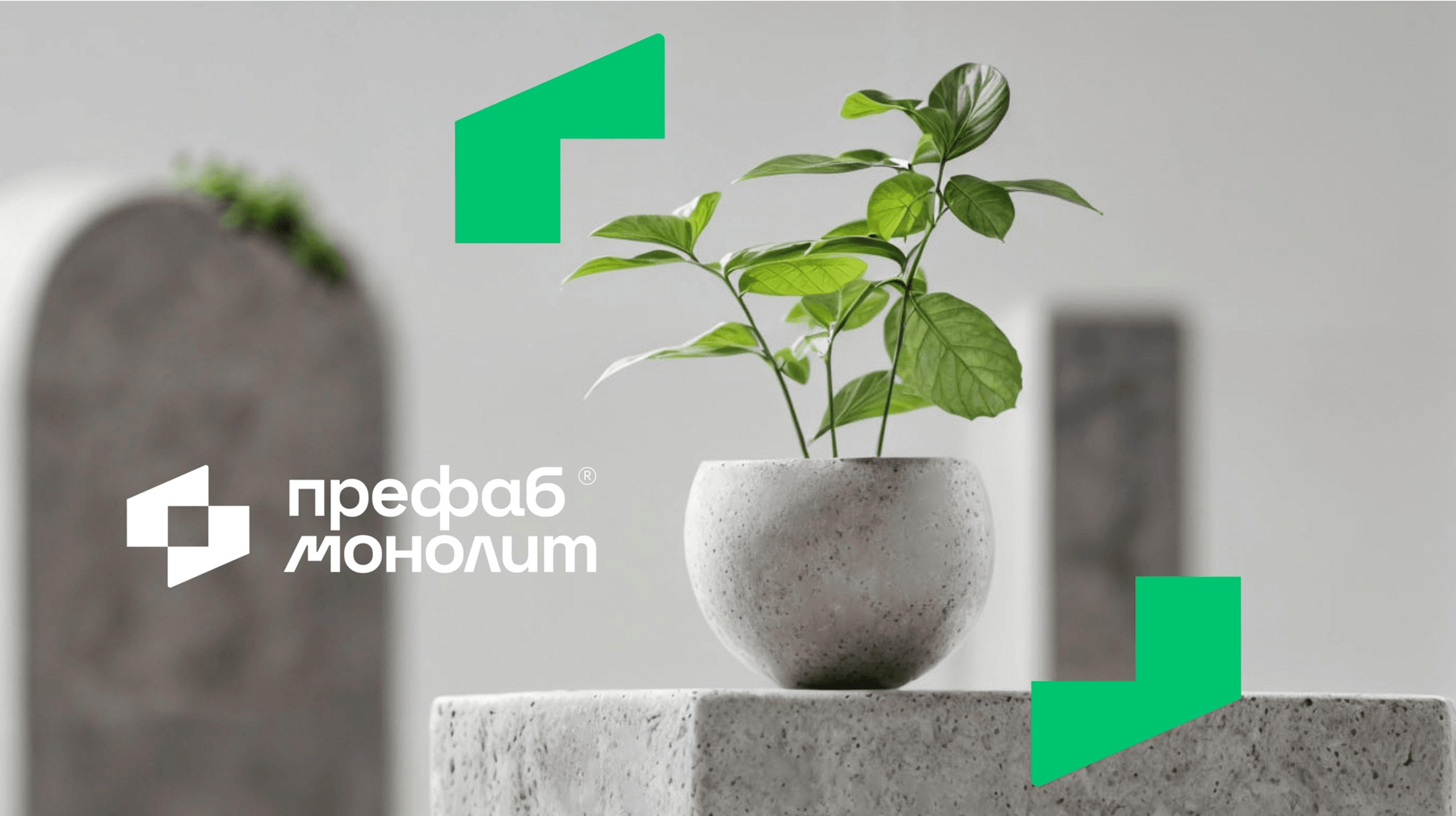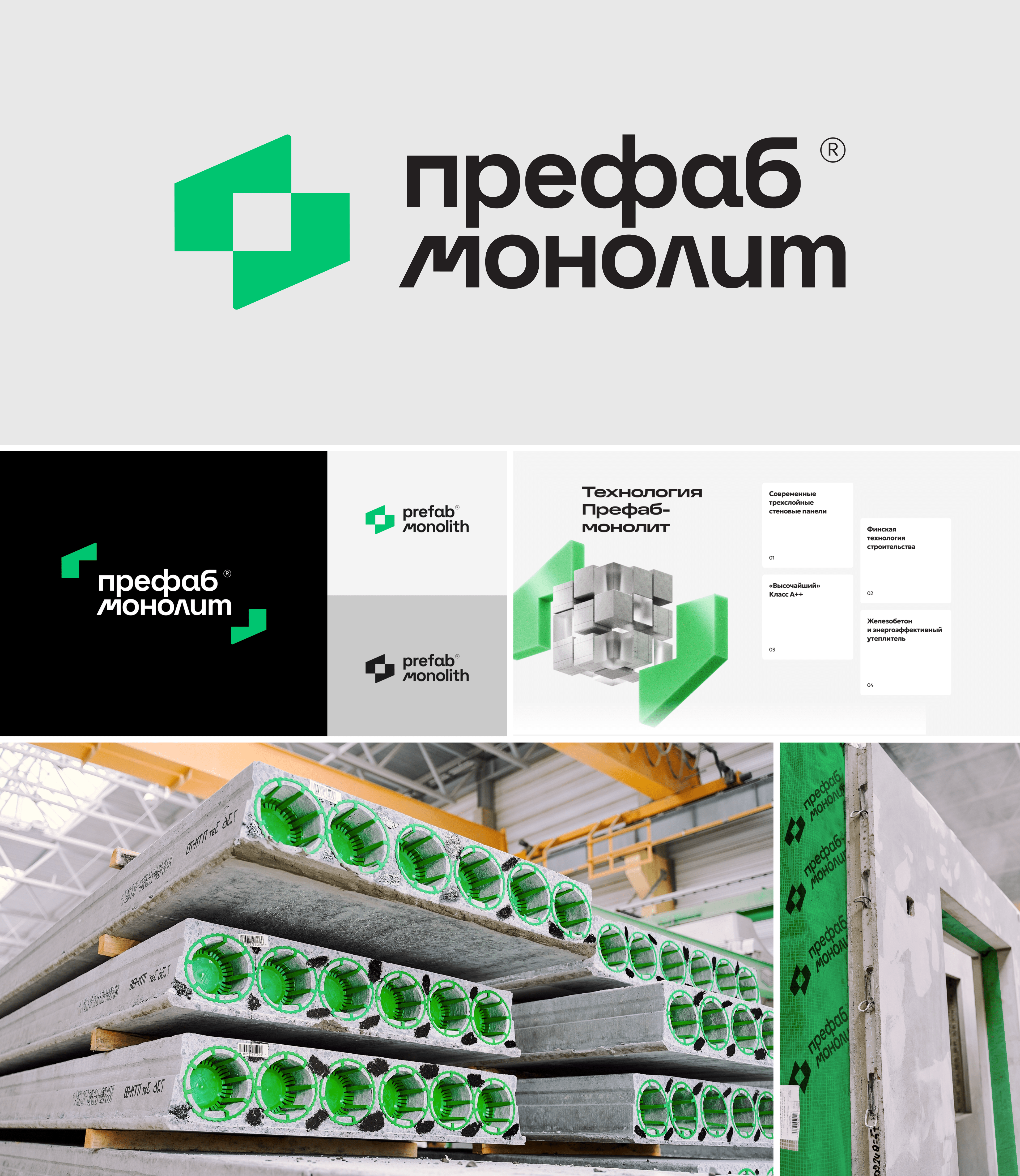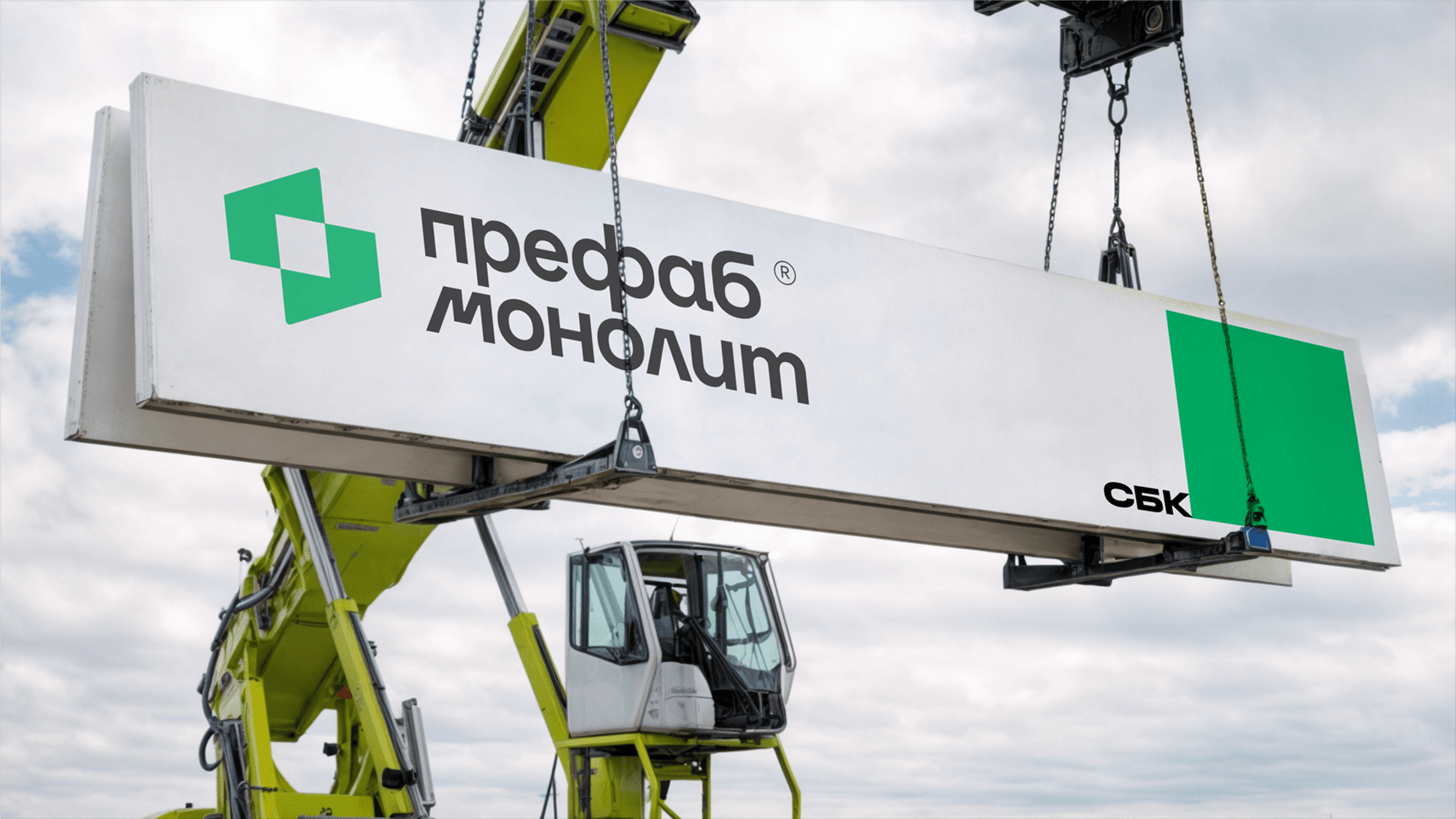 Знак работает как графический элемент и задаёт узнаваемый визуальный язык, связывающий СБК и «Префаб Монолит» в единый код.