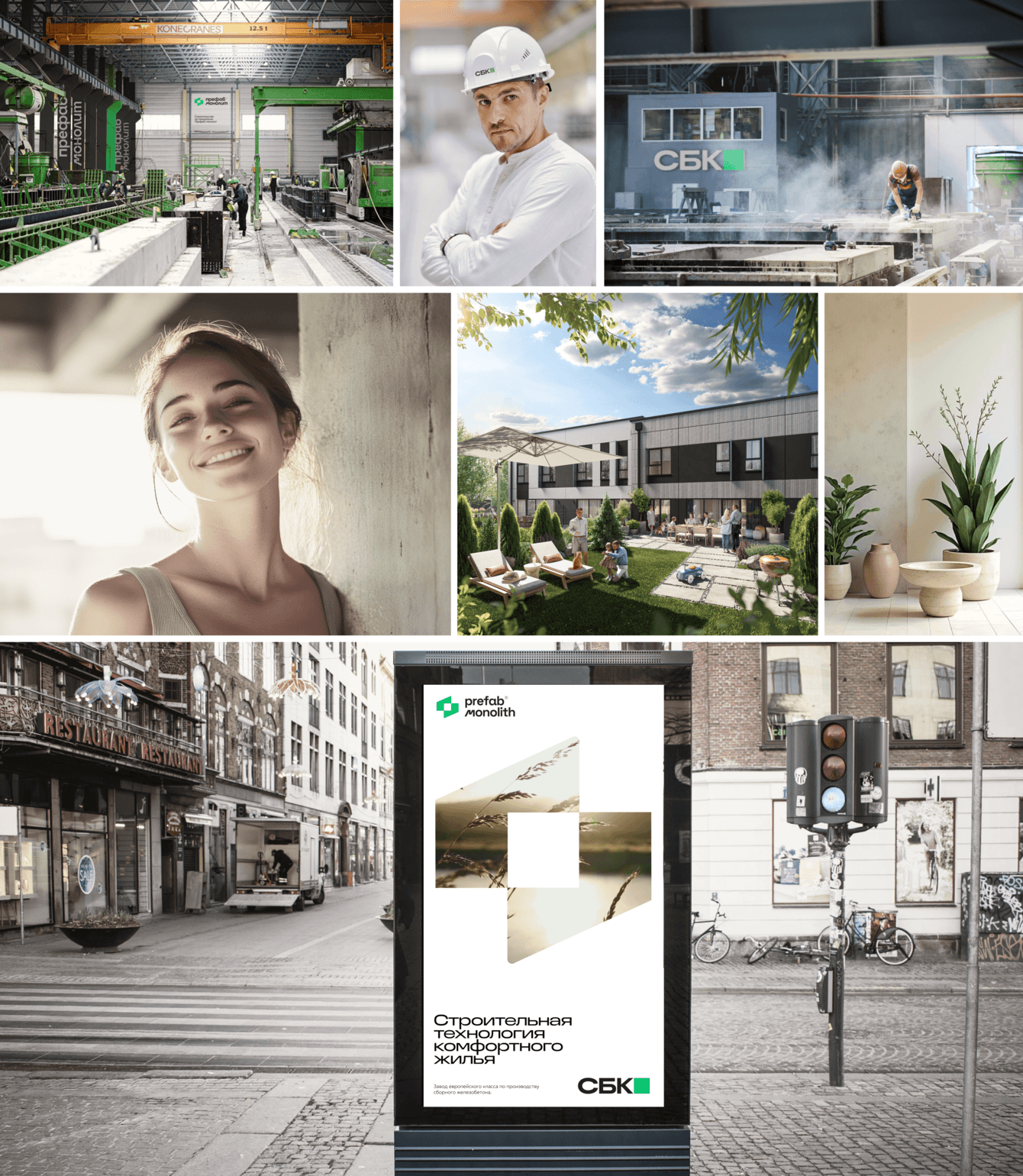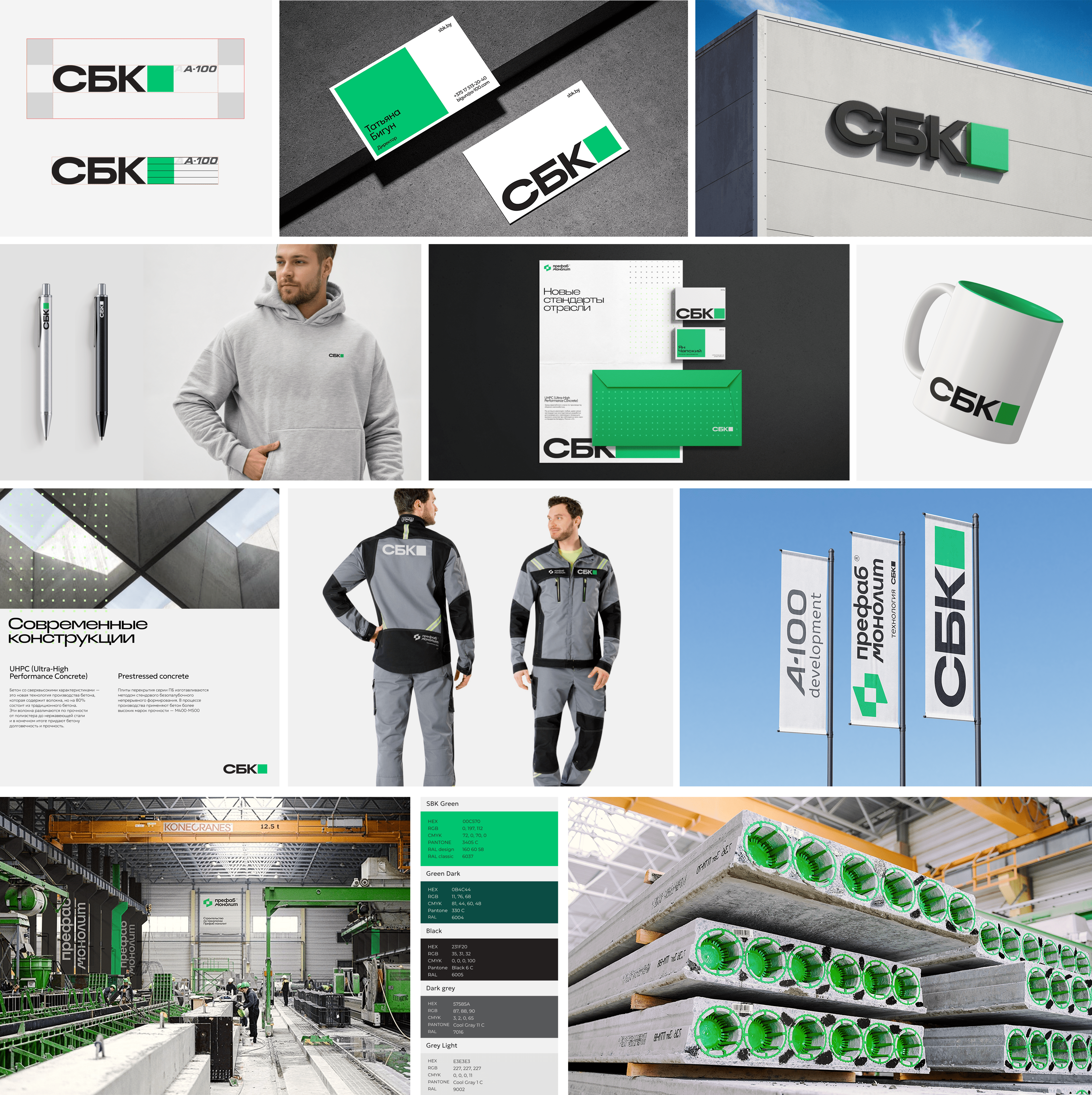 От конструктивного брендинга — к базовой айдентике. После множества итераций и поисков решений мы нашли по-настоящему смелую и дерзкую концепцию, соответствующую духу и амбициям СБК. Ключевым элементом решения стал символ зеленой плиты в своём максимально концентрированном знаковом виде — зеленого квадрата.