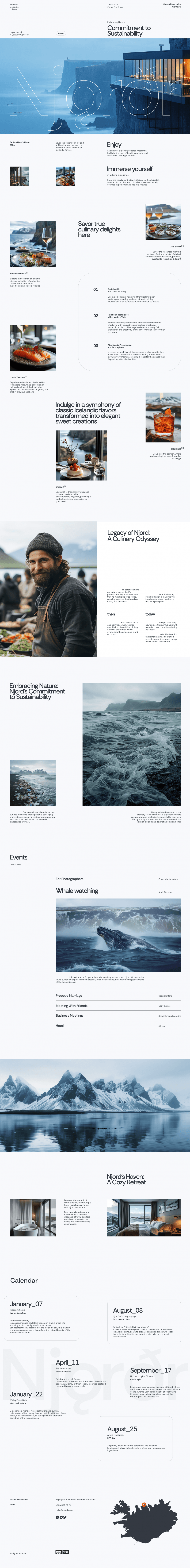 Если вы ищете не только гастрономических впечатлений, в Njord предложат отправиться на прогулку к китам, посетить выставку ледяных фигур, сходить на гейзерное СПА или ежегодный фестиваль морепродуктов, с мастер-классами от шефа.