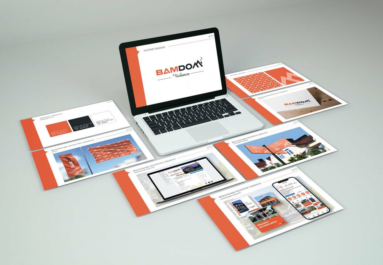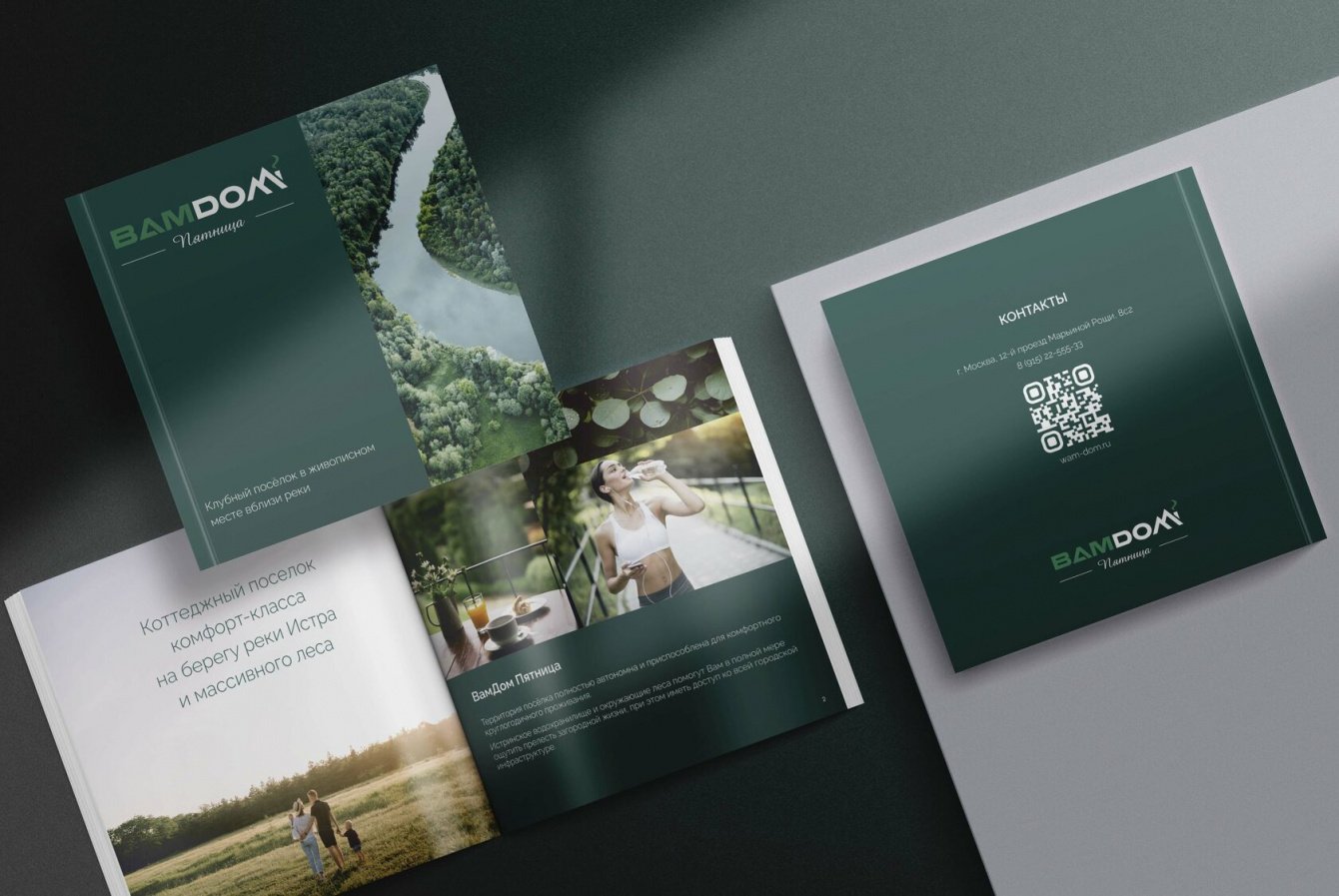 Для коттеджного поселка комфорт-класса «ВамДом Чебакса» разработали полноценный брендбук — с рекомендацией по всем пропорциям, цветовым и шрифтовым решениям.
