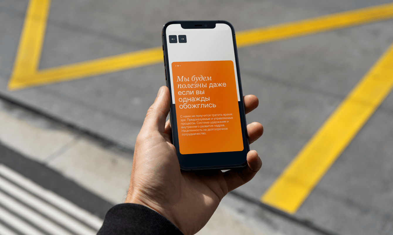 Мы выбрали спокойные и премиальные оттенки, такие как темно-синий, с ярким оранжевым акцентом. Это сочетание демонстрирует баланс между серьёзностью и игривостью.