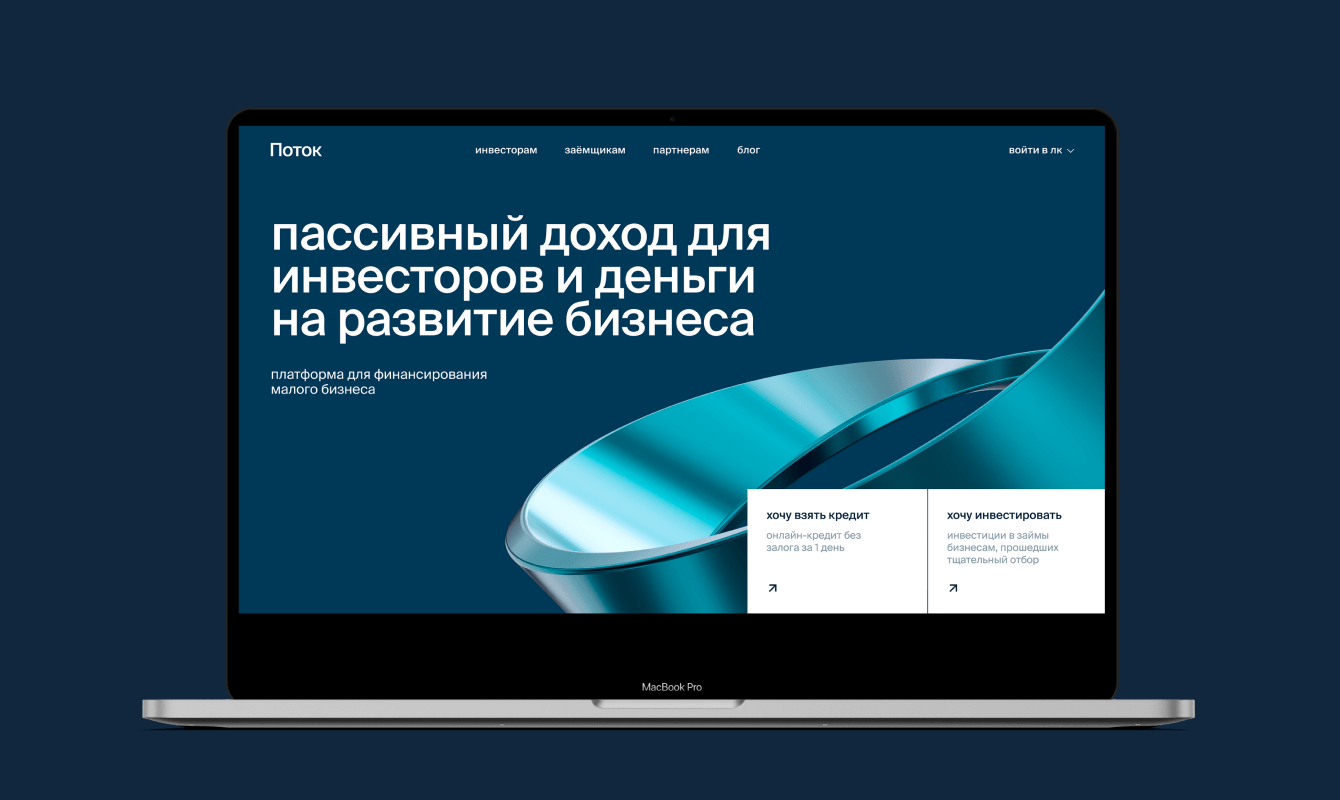 Клиент вернулся к нам с задачей разработки нового фирменного стиля и сайта после отделения компании от Альфа-Банка. Компании требовалось новое визуальное воплощение, транслирующее самостоятельность и рост компании, произошедший за несколько лет. Старый фирменный стиль, который также были создан нашей командой, передавал принадлежность Потока к внутренним компаниям Альфа-Банка и уже не соответствовал позиционированию бренда. Новый стиль должен был транслировать надежность и устойчивость через визуальную метафору, связанную с именем компании, а обновлённый сайт должен был помочь увеличить мотивацию аудитории работать с инвестиционной платформой клиента.