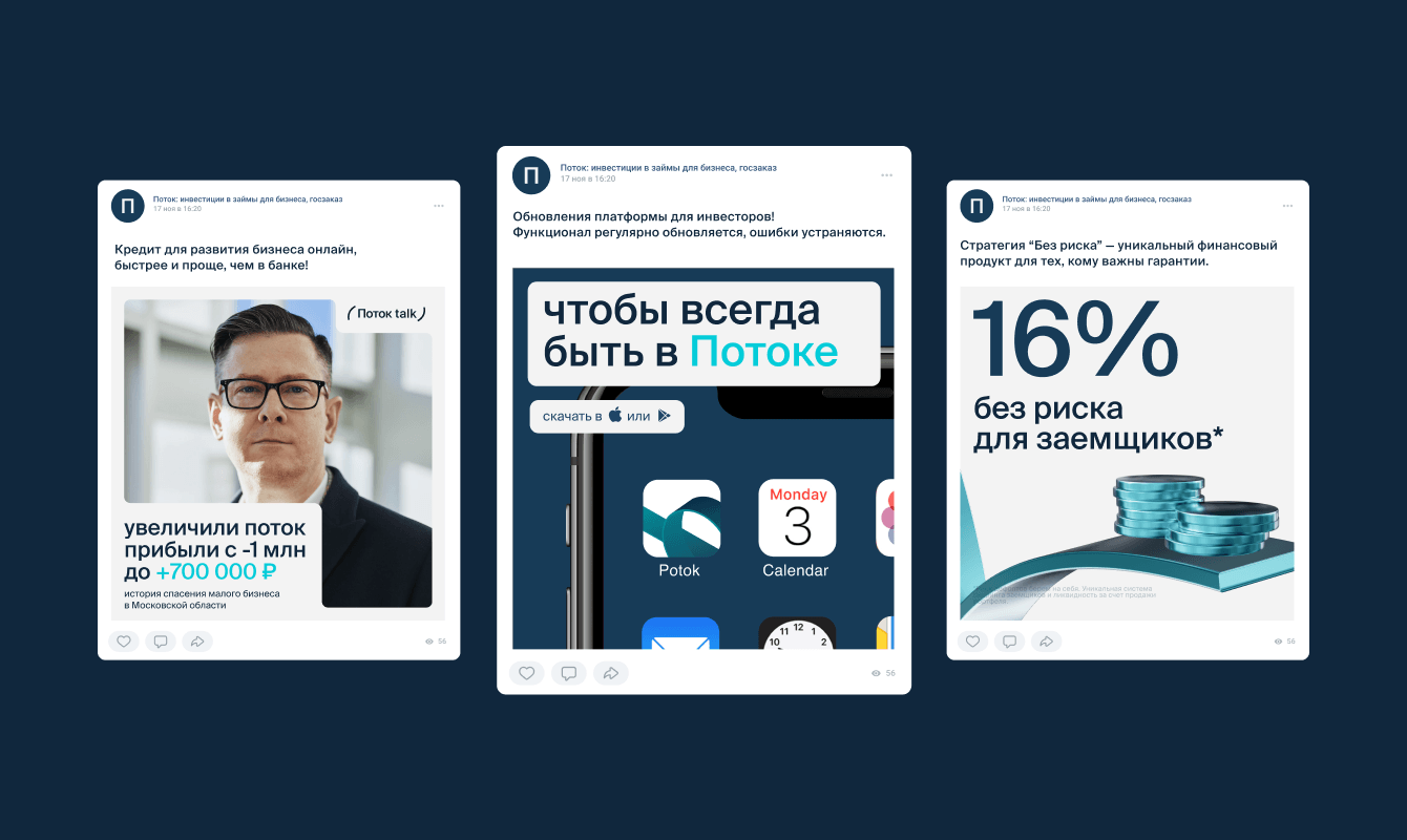 Главным героем нового стиля стала 3D-лента глубокого бирюзового цвета, символизирующая связь инвесторов и заёмщиков (аудитории клиента). Дополняющими элементами стали 3D-объекты, символизирующие коды категории финансов и инвестиций. Базовые элементы стиля (логотип, цвета, шрифты) решены в сдержанной манере, что призвано транслировать серьёзность компании, не отвлекая аудиторию броскими приемами. Прямой и уверенный нарратив копирайтинга в маркетинговых носителях и сайте также транслирует профессиональную серьёзность и сосредоточенность на эффективности продукта компании.