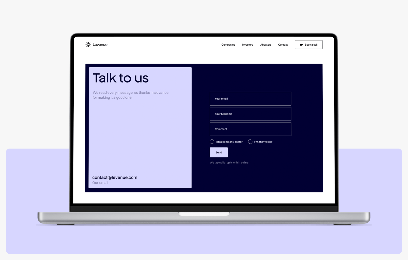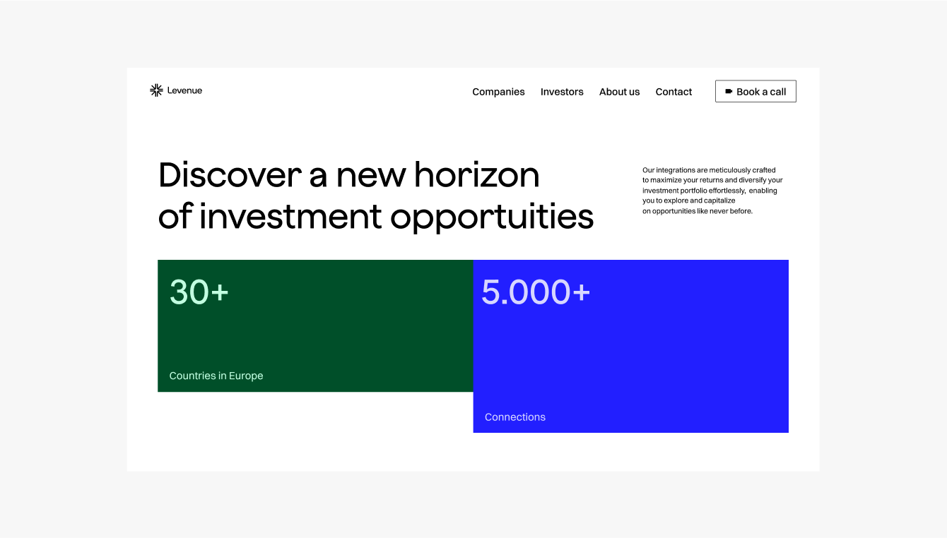 В веб-дизайне мы успешно применили все стилистические константы, добавив к ним еще больше разнообразия и вариативности. При этом сайт в значительной степени сфокусирован на пользователей и отличается четкой структурой и удобной навигацией, что помогает пользователям легко ориентироваться в разнообразных предложениях Levenue.