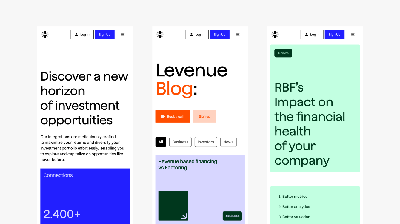 Разработка цветовой палитры заняла значительную часть проекта, удачно передав дух Levenue, поддержав его ориентированность на разные сегменты аудитории и органично вписавшись как в сетки и интерфейсы социальных сетей, так и в сайт.