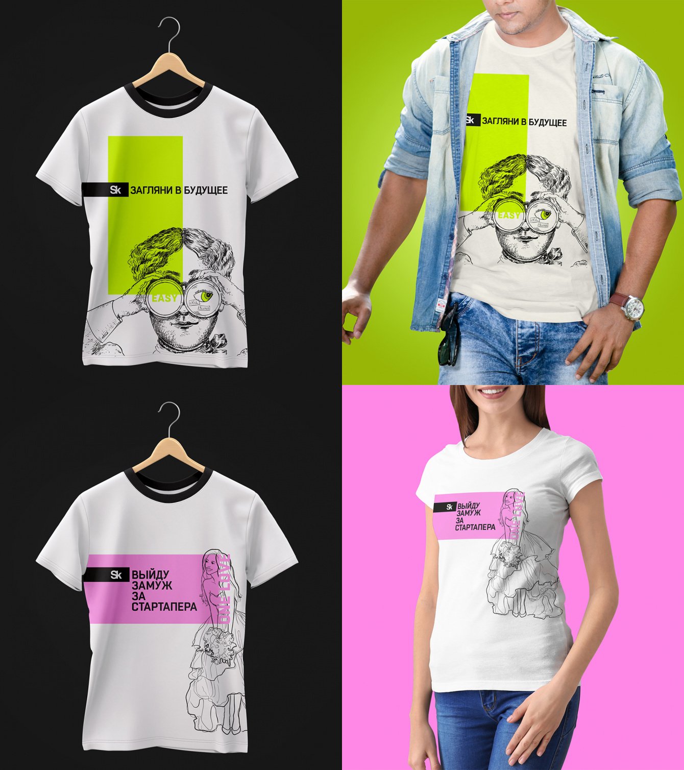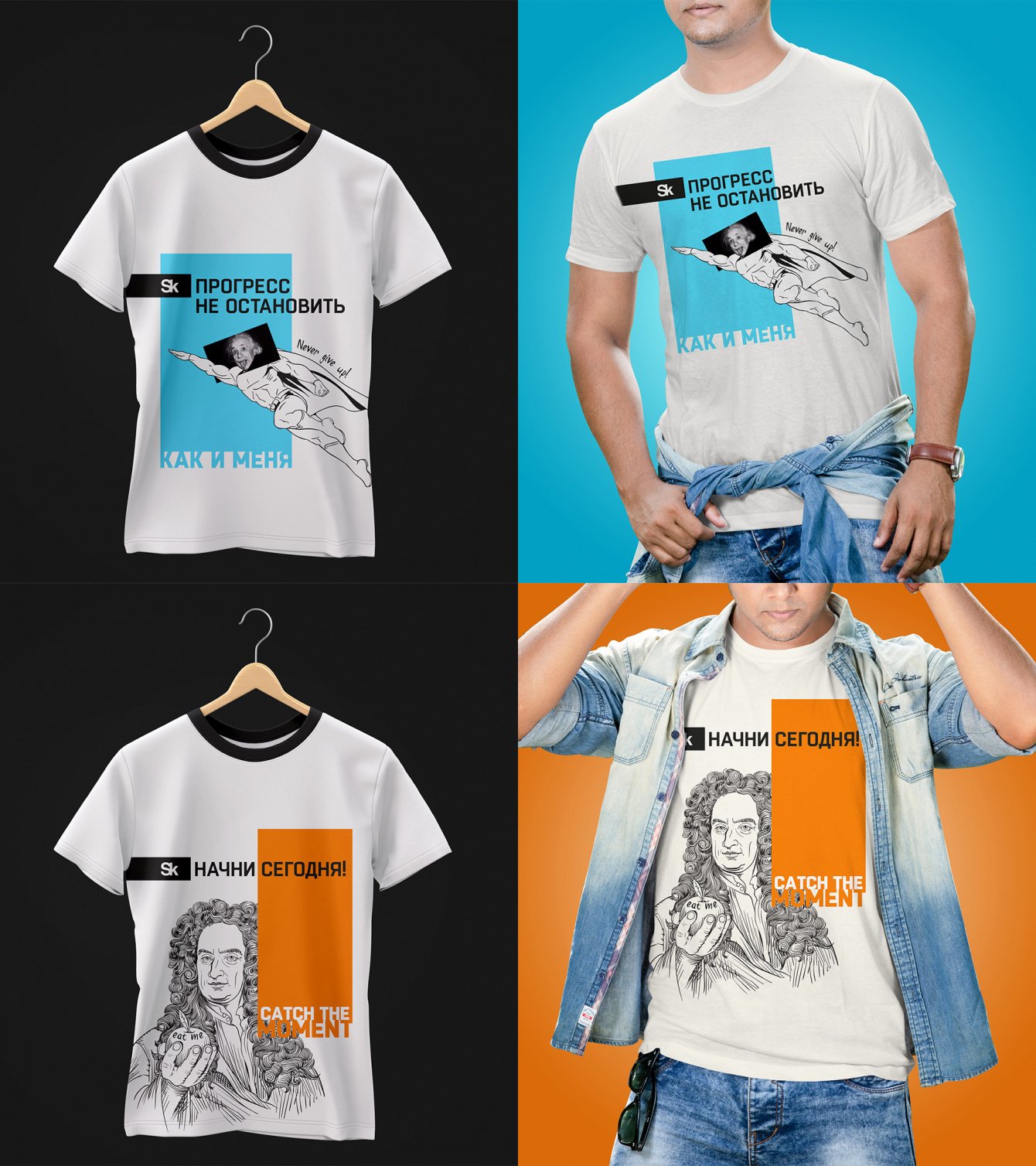 Если, всё же, Ваше призвание – не наука, то можно если уж не погружаться, то хотя бы прикоснуться к манящему миру науки. Перед нами поставили занимательную задачку – разработать дизайн брендированных фирменных вещей (футболок, худи) для сувенирного магазина Skolkovo MERCH.