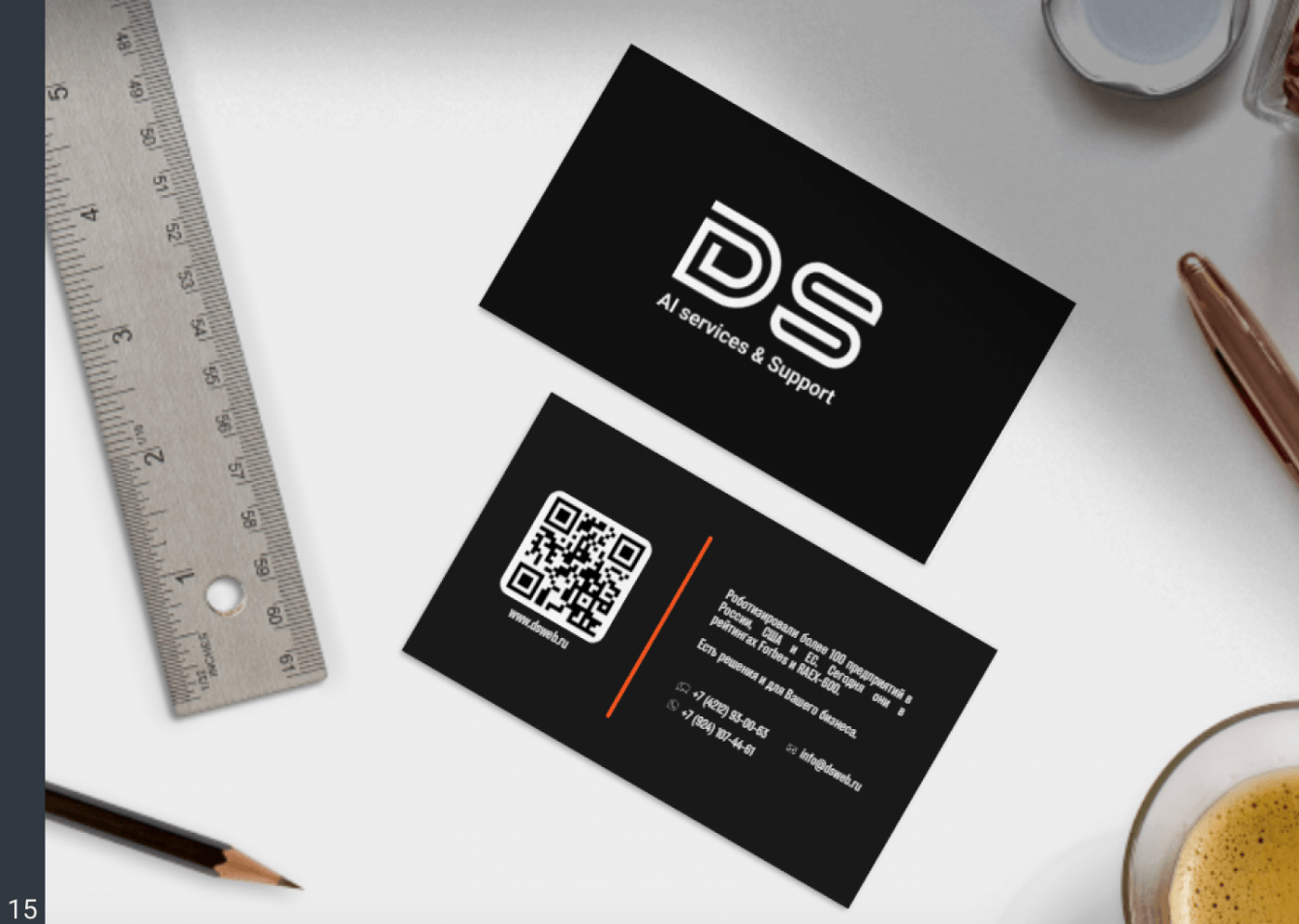 В основу бренда DS AI services, IT support легла концепция "AI-powered solutions" - решений, в которых искусственный интеллект является ключевым элементом. Мы акцентировали внимание на таких преимуществах нейросетей, как повышение скорости и точности обработки данных, автоматизация рутинных задач, персонализация продуктов и услуг.