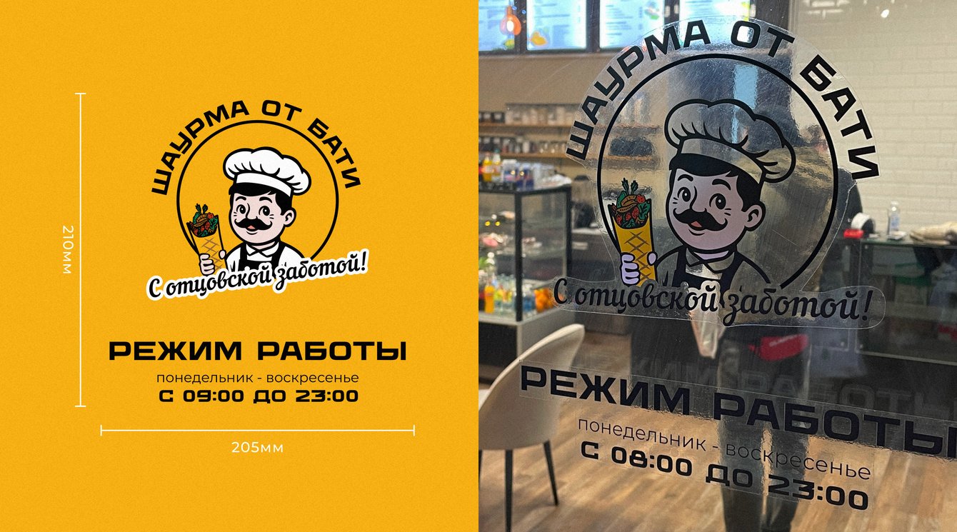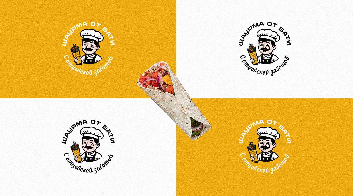 Разработать логотип-персонаж доброго повара, который держит в руке своё творение - вкуснейшую шаурму.За основу логотипа был взял ретро стиль, приятные акцентные цветовые сочетания, а в текстовой части использован стильный и акцентный шрифт, дополняющий общую картину.