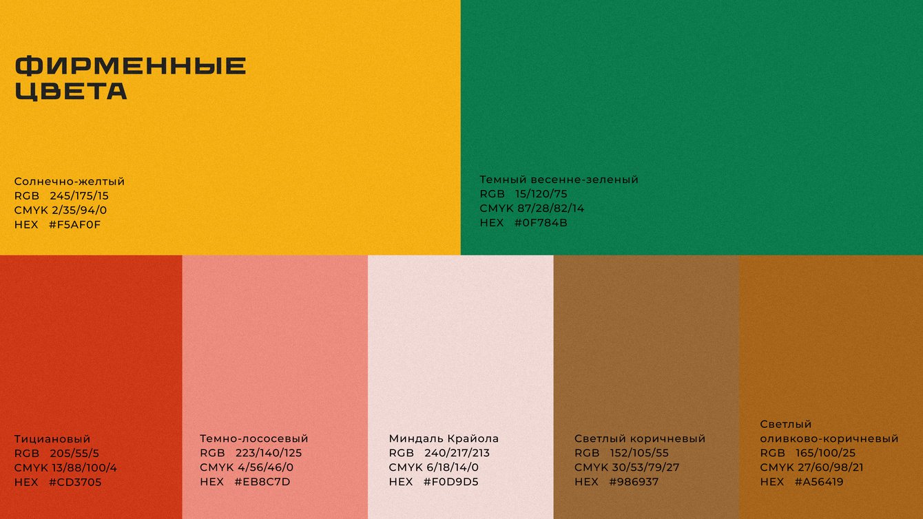 - фирменная цветовая палитра и шрифтовая пара