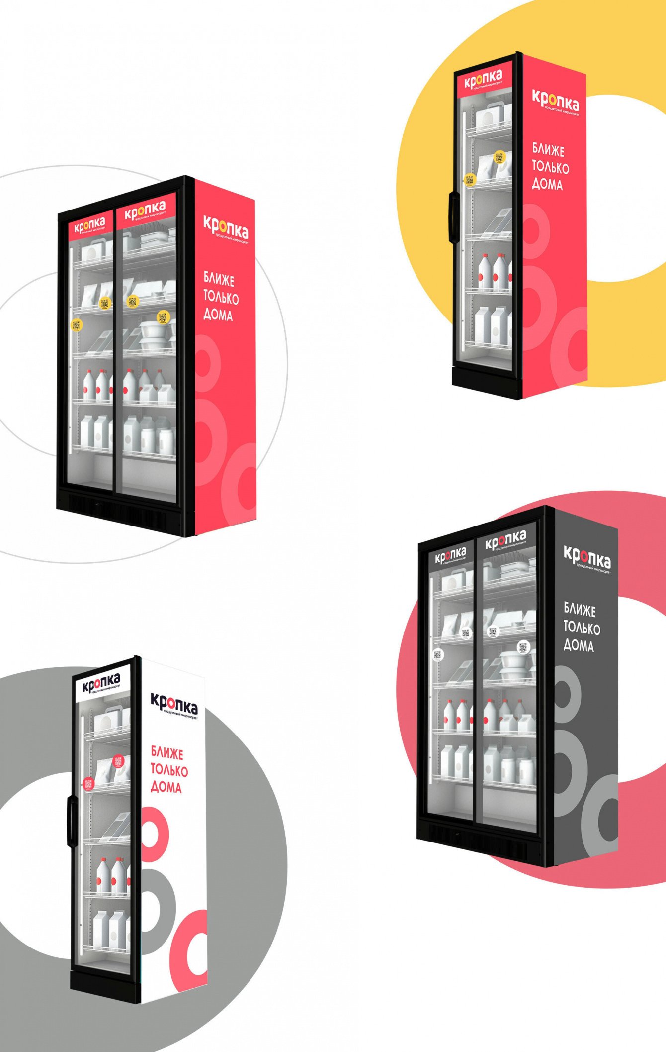 Одна из важный составляющих проекта — брендирование холодильного оборудования, на котором завязана концепция микромаркета. По желанию заказчика мы разработали три цветовых решения.