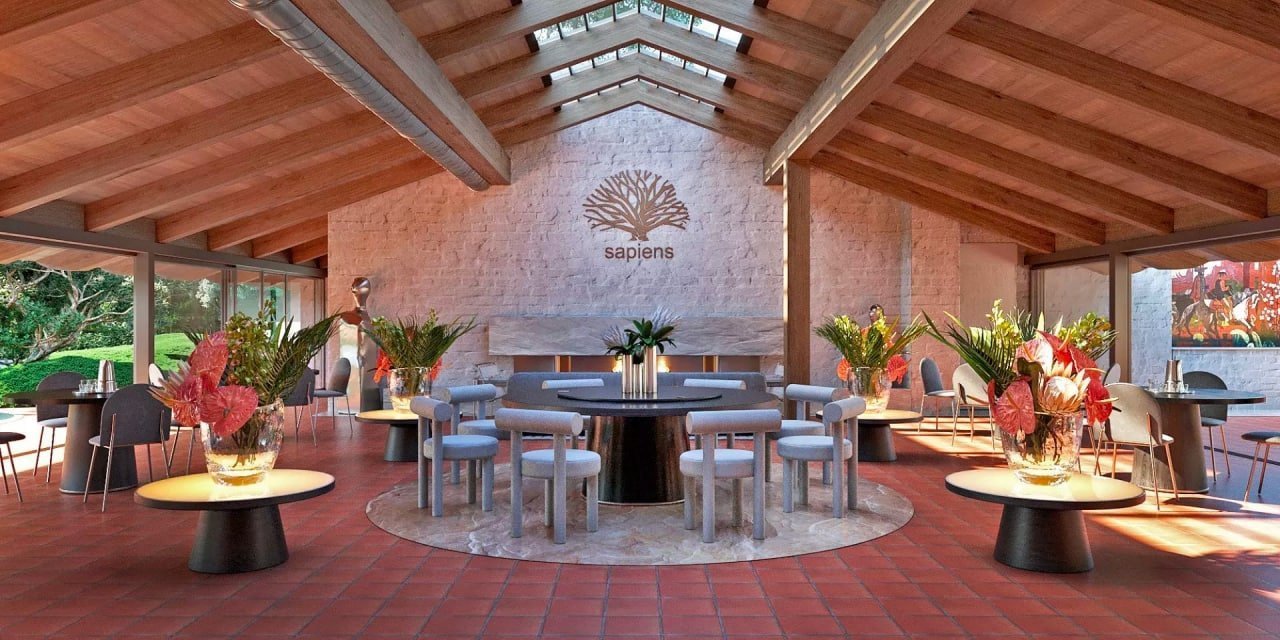 На фото пример брендирования в Sapiens Menlo Park — пространства между вдохновением и действием, места, предназначенного для общения и перемен. В историческом здании площадью 8500 квадратных футов, трех акрах культовых садовых ландшафтов и множестве помещений для встреч и работы Sapiens предлагает удобное, спокойное и обогащающее пространство для коммуникаций и работы сообщества.