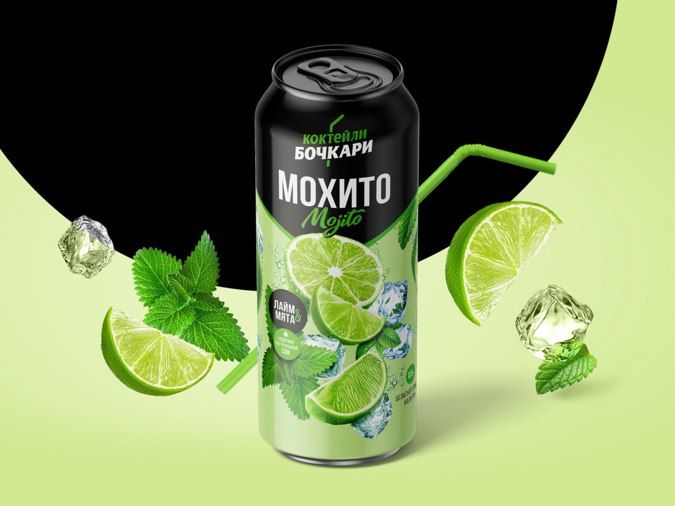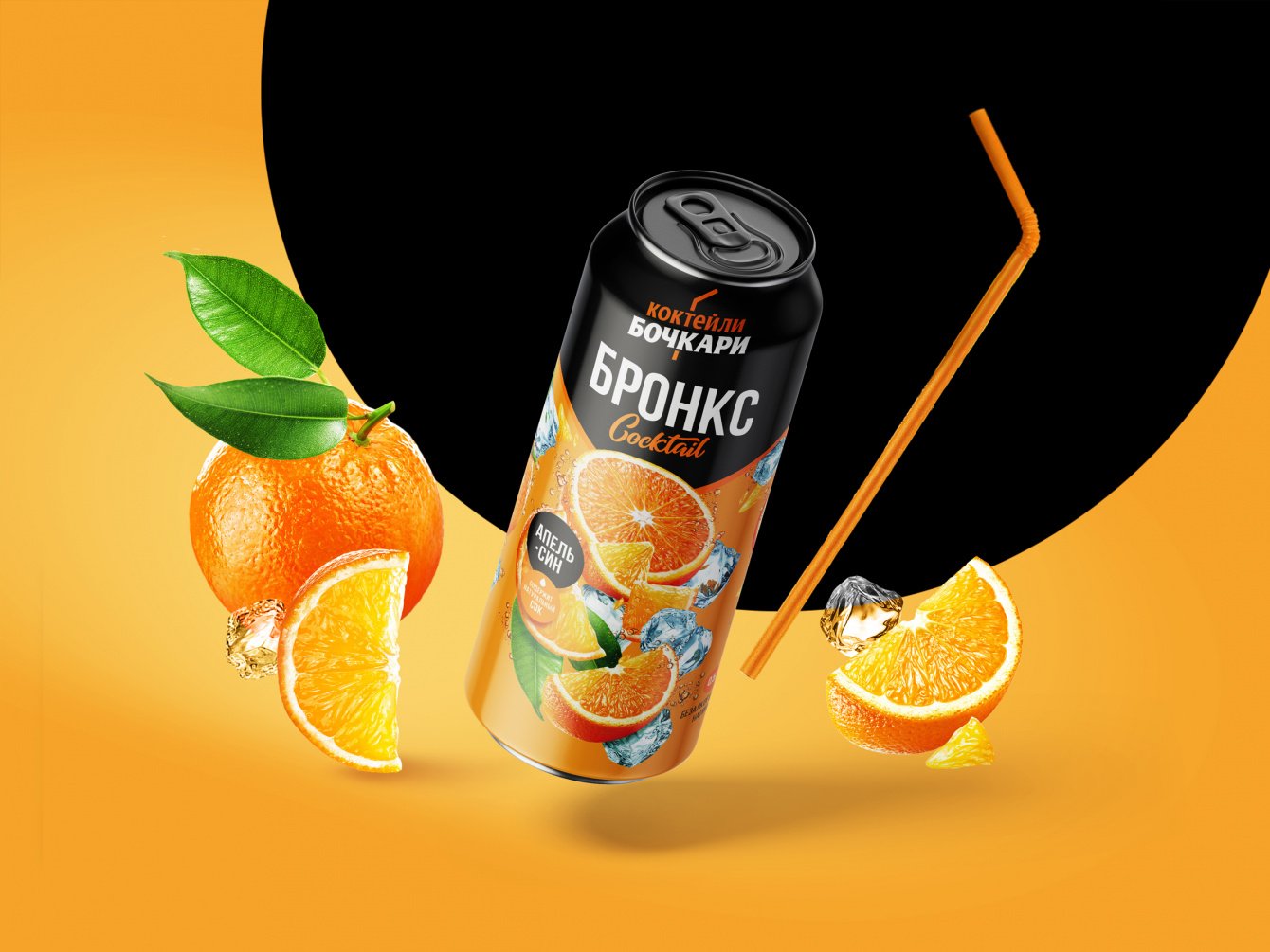 От наших специалистов требовалось не только разработать новую марку безалкогольных коктейлей, но и создать фотореалистичные иллюстрации, а также дизайн алюминиевой банки.