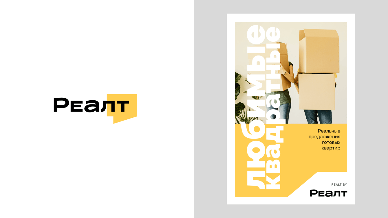 Задача, с которой обратились к Студии Райт, — обновить устаревшую айдентику и создать образ, от которого будет ощущение, что Realt — площадка недвижимости и для экспертов рынка, и для людей, мечтающих о жилье.