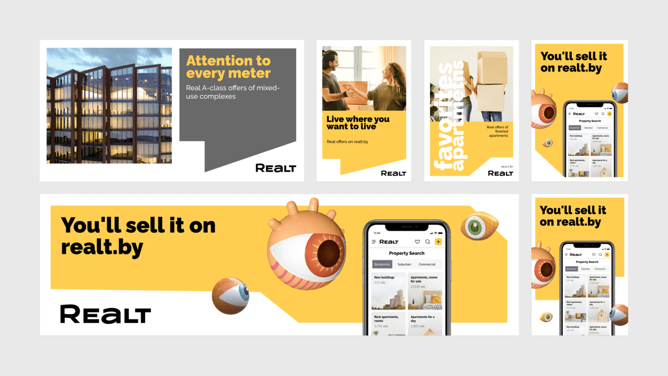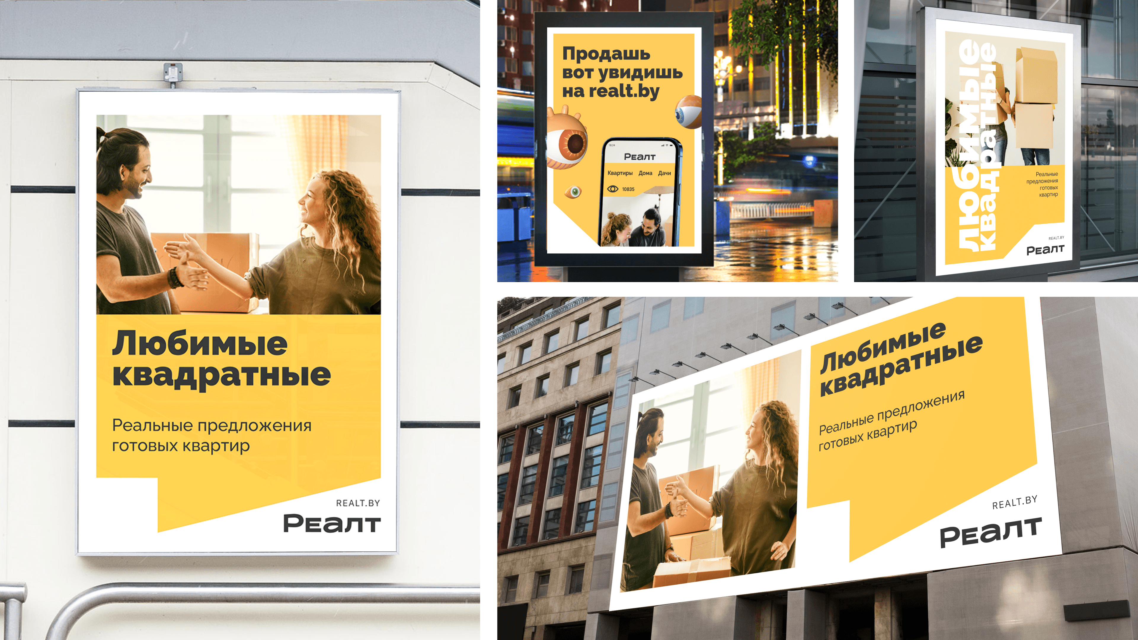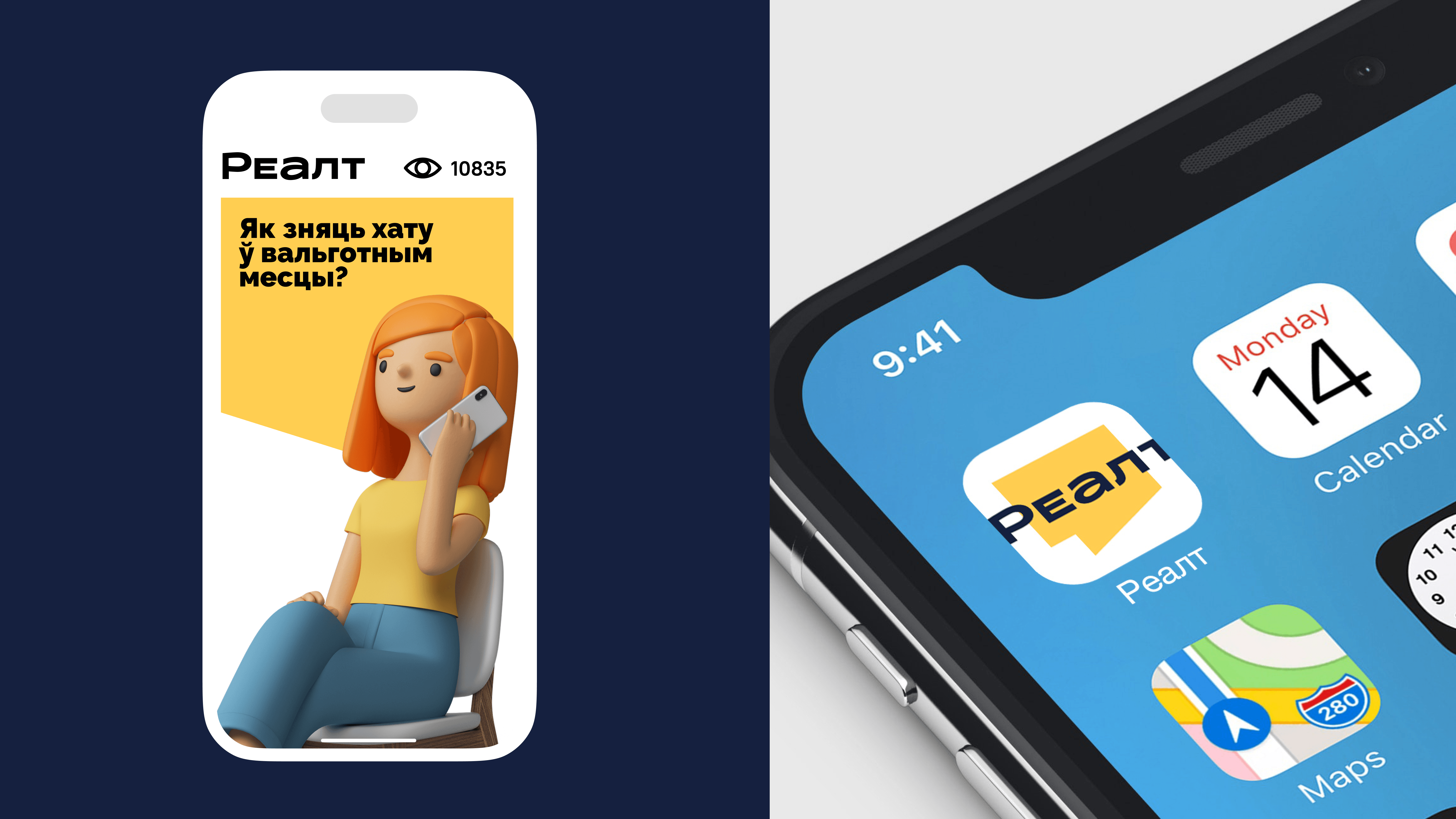 Задача, с которой обратились к Студии Райт, — обновить устаревшую айдентику и создать образ, от которого будет ощущение, что Realt — площадка недвижимости и для экспертов рынка, и для людей, мечтающих о жилье.