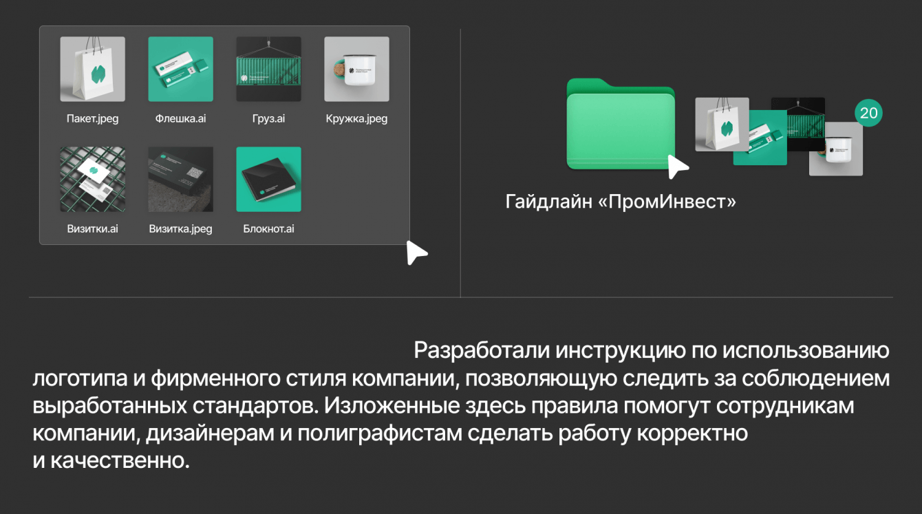 Разработали логотип и фирменный стиль для группы компаний «Промышленные инвестиции», объединяющей целый ряд машиностроительных производств и смежных предприятий.